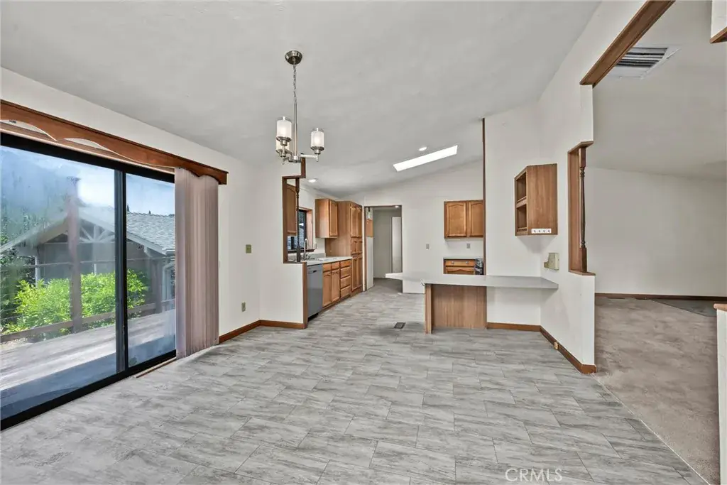The kitchen offers ample cabinetry and counter space, including a counter-height bar, and flows seamlessly into the dining area with sliding door access to a large deck which leads to your built-in covered BBQ area—perfect for gatherings!