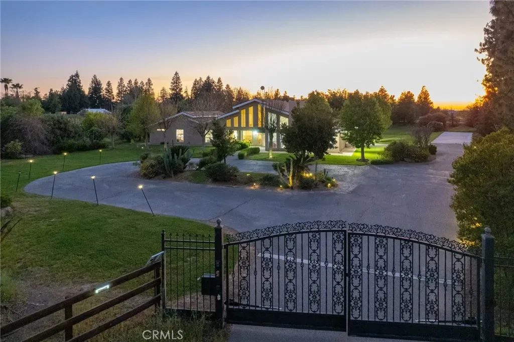 Tucked away behind a private gate on a sprawling lot of nearly 2.5 acres, this home offers the rare combination of space, utility and a prime location within the acclaimed Clovis Unified School District. The thoughtfully designed floor plan features high ceilings and lots of windows to let the natural light in. The 4 bedrooms and 2.5 baths are all on one level with only the loft upstairs. The loft would function great as an office, gym or TV room. At the heart of the home is the grand living room with a fireplace and large picture windows looking out to the front yard. There is also an additional living area plus casual and formal dining. The kitchen is equipped with stainless steel appliances, double ovens, breakfast bar and pantry. The fully owned solar system offers energy efficiency while the massive backyard gives the kids plenty of room to roam or for entertaining large parties. There are fruit trees, lots of grass and loads of space to plant a garden or build an ADU. Call for a private tour today! Bed/bath counter differ from tax record. Buyer to verify.