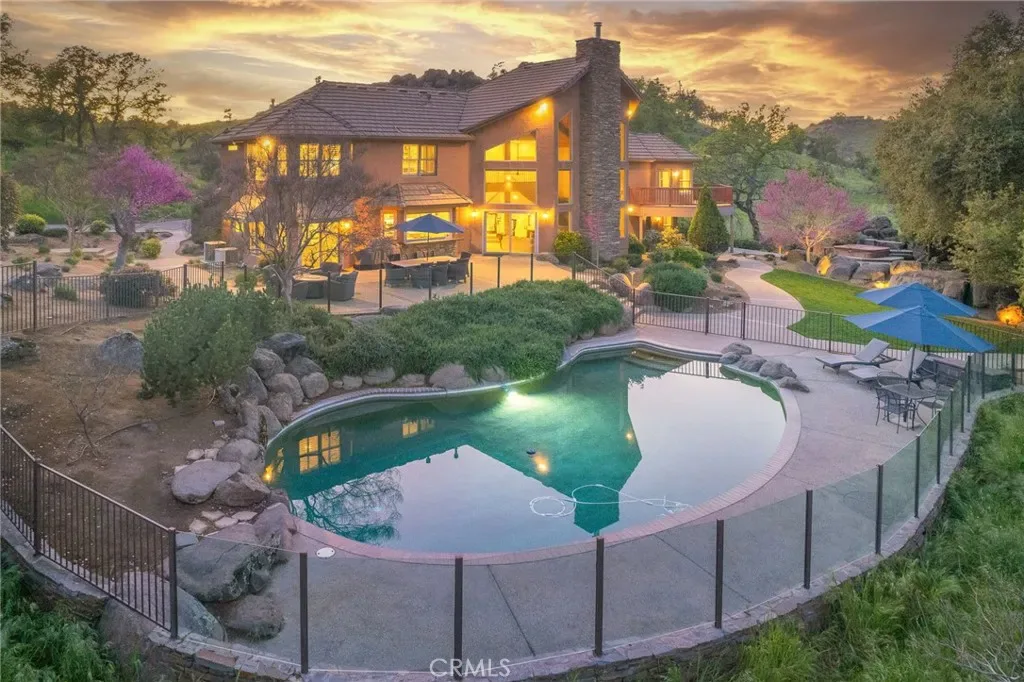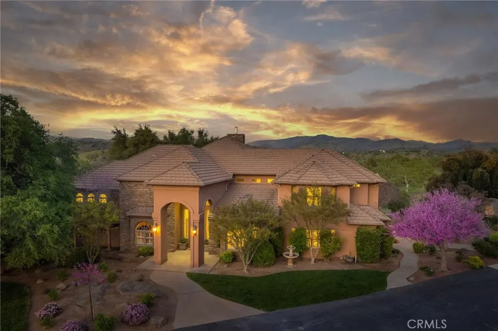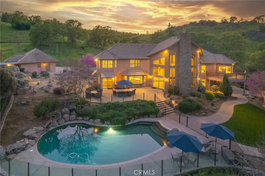 Custom-built by Erickson Construction, this impressive estate sits on a sprawling 20-acre parcel in the gated Quail Oaks II community and offers sweeping views of the Sierra Nevada mountains. The west-facing home enjoys beautiful sunsets, a seasonal pond, and the added convenience of a separate private gate, creating a setting that feels both peaceful and private.