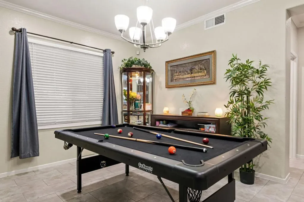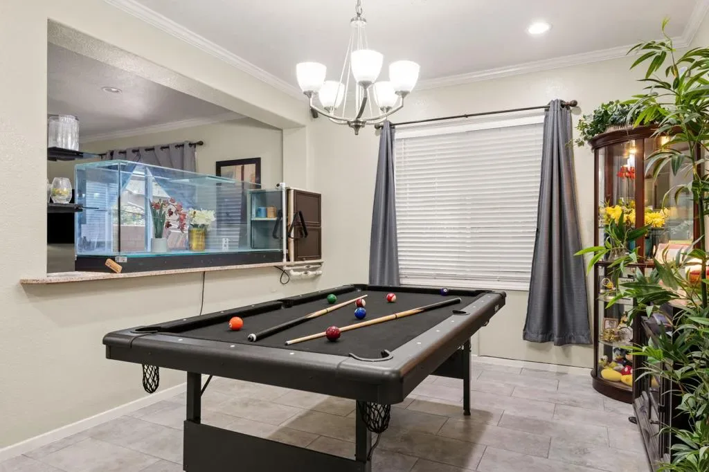 Two-story home offering 5 bedrooms and 3 bathrooms with no HOA. The open floorplan provides abundant natural light and comfortable living spaces ideal for both everyday living and entertaining. The kitchen overlooks the main living area and features stainless steel appliances and a center island. A spacious game room with a pool table adds additional space for recreation or gatherings. All bedrooms are generously sized, and the bathrooms include modern amenities. The backyard features an Alumawood covered patio, creating a great space for outdoor dining, relaxing, or entertaining. Schedule your tour today to see all this home has to offer.
