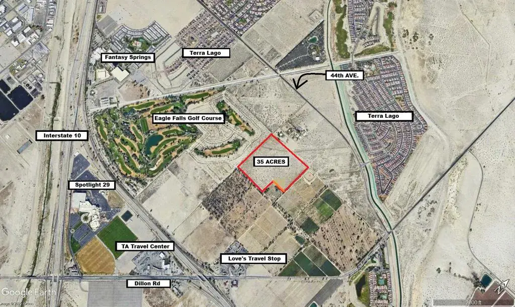 Great development, or a buy to hold opportunity. Located adjacent to Eagle Falls Golf Course (a Cabazon Band of Cahuilla Indians’ property), in the City of Coachella.The zone is R-D, RESORT DISTRICT which allows Retail, Commercial, Hotel/Motel, Multi-family,