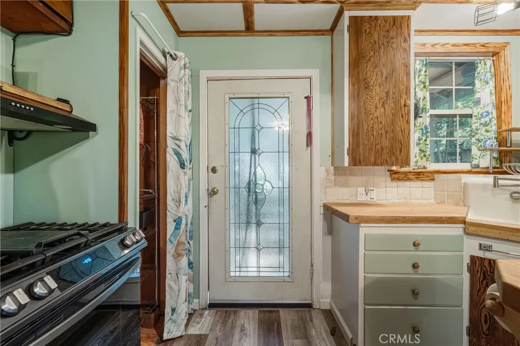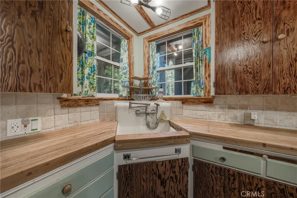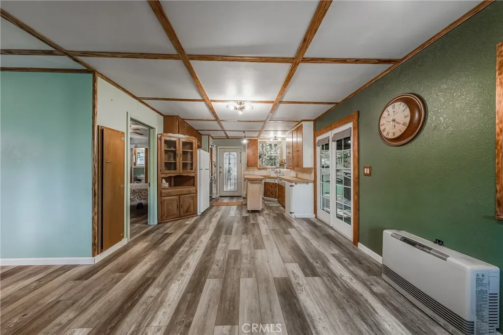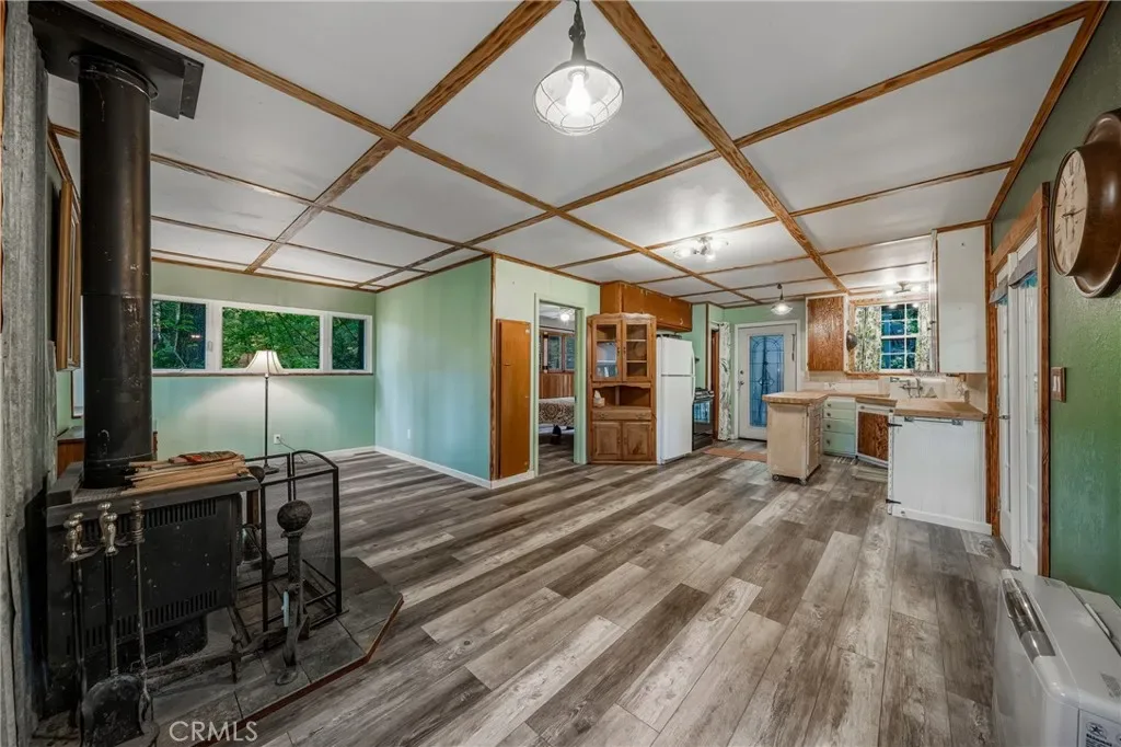 Step inside to a warm and welcoming living space filled with natural light, creating an ideal setting to relax and unwind. The thoughtfully designed layout maximizes space while maintaining a comfortable, cabin-style feel. A highly efficient wood-burning stove anchors the space, providing incredible warmth during the colder months / while equipped with a propane Rinnai heater—perfect for those cozy winter days when Cobb Mountain sees its fair share of chilly weather and even snow.