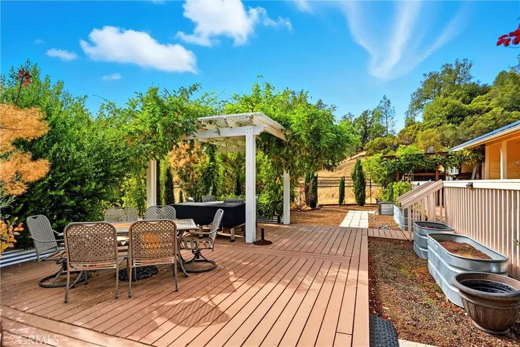 Private Mediterranean Retreat on 33 Acres with Sweeping Mountain Views! Welcome to your dream estate — a meticulously maintained, single-level Mediterranean-style home nestled on 33 acres of private, picturesque land. With three bedrooms, two bathrooms, a dedicated office, and nearly 3,000 square feet of thoughtfully designed living space, this home offers the perfect balance of luxury, comfort, and nature. Step inside to discover a spacious open floor plan, filled with natural light and seamlessly flowing from room to room. Multiple doors open onto expansive decks, inviting the outdoors in and providing effortless access to stunning views of Cobb Mountain and the valley below. The chef’s executive kitchen is a culinary delight, featuring premium appliances, generous counter space, and a layout perfect for both entertaining and everyday living. Outside, the lifestyle continues with beautifully landscaped grounds including 10 grapevines (featuring Italian varietals and Perletti grapes), apple trees, elegant cypress trees, and a variety of trees and flowering plants — all supported by a comprehensive drip irrigation system. Enjoy the ambiance of the wisteria-covered arbor, ideal for alfresco dining or a relaxing glass of wine. For those seeking self-sufficiency and serenity, this property includes a level area with corral and additional storage building, fully fenced outdoor living spaces, a fully connected Generac generator and Firewise protection: hardy board siding and 100-foot defensible space for peace of mind. Located in a friendly neighborhood of acreage properties, you’ll enjoy a secluded setting with unmatched privacy — and still just a 5-minute drive to town amenities. Whether you’re looking for a quiet retreat, a hobby vineyard, or a place to entertain and enjoy nature, this property offers a rare opportunity to live the lifestyle you’ve been dreaming of.