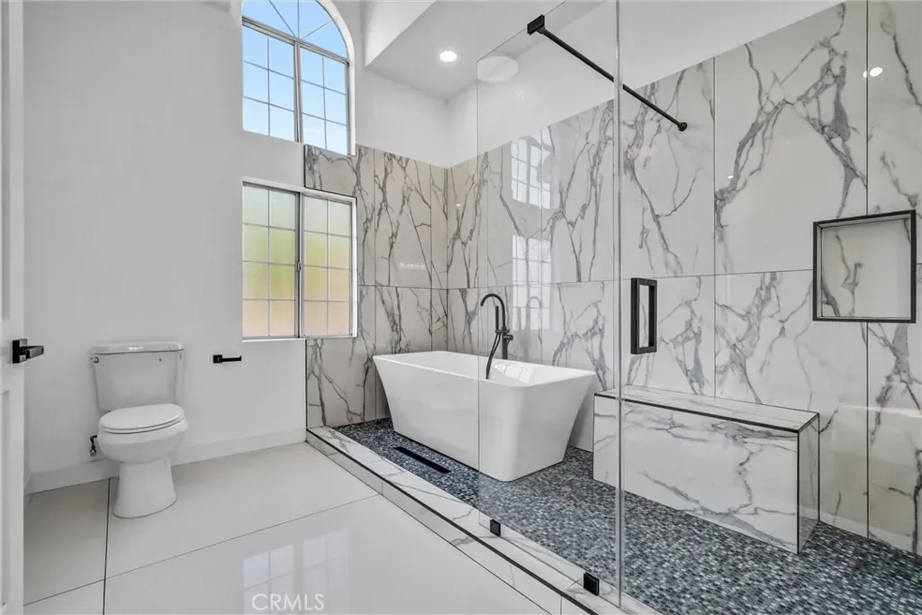 Step into this beautifully updated two-story 4-bedroom, 3-bath home in Compton, where modern upgrades and thoughtful design meet comfort and style. The luxurious master suite is a true retreat, featuring a spacious bedroom and a completely redone primary bathroom with porcelain tiles, a huge soaking tub—perfect for relaxing.
