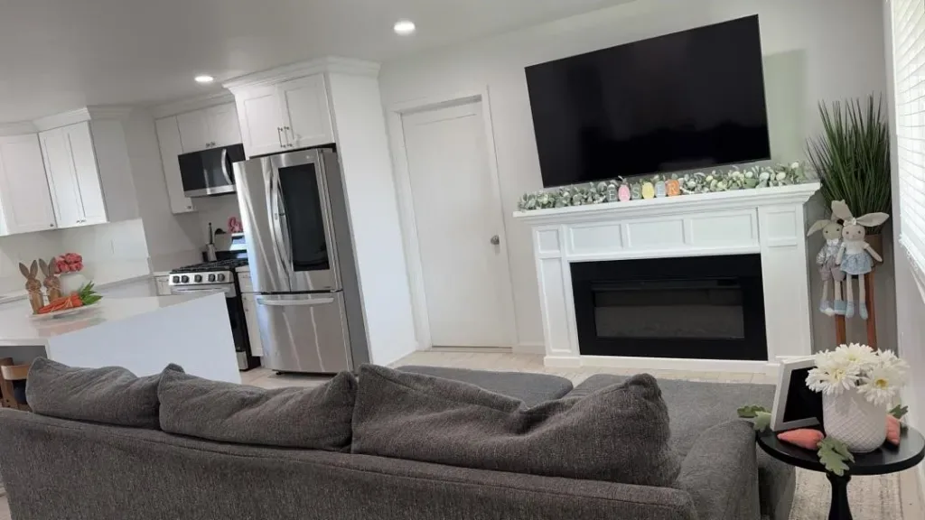 Step outside to a newly landscaped backyard, complete with synthetic grass—perfect for children, pets, or entertaining guests. The space is fully enclosed by approximately 6-foot white cylindrical walls, offering both privacy and security.