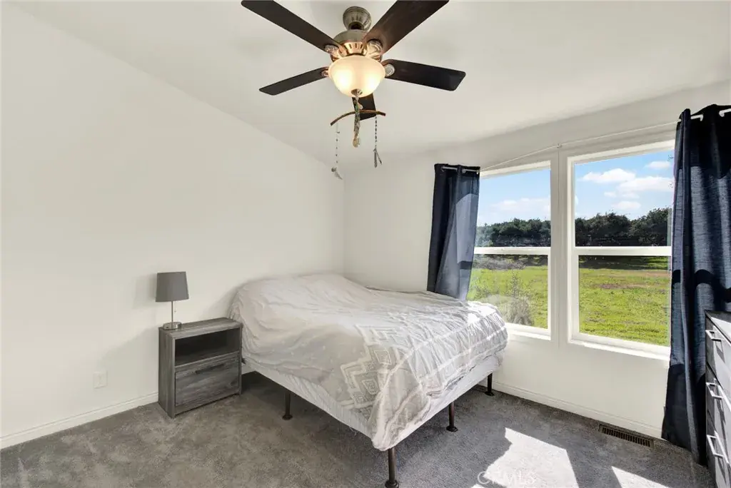 WELL HELLO BEAUTIFUL!! Welcome to 23580 Loleta. Nestled behind an ancient olive grove is this fantastic home boasting 2658 square feet. The well is an impressive 350 feet deep and the solar is PAID FOR, what a bonus on your electric bill. Step up into up into the entry way sand you will be impressed right away. There are two great sized rooms on either side of the formal entryway, each of which would make a great guest suite. The other room could be used as many things, a bar, exercise room, playroom and more. The living room is open concept to the dining area and kitchen. Love to cook? The kitchen is absolutely gorgeous with ample prep, storage and cupboard space. The island is a fantastic size (perfect to put plenty of people around) and the crisp white granite really looks beautiful. Just off the kitchen is the walk-in pantry (storage galore). Each of the bedrooms are a great size and the guest bath also has double sinks (great for 2 people to get ready at the same time). The master bedroom is really nice boasting not just one but 2 walk in closets. The master bathroom is large and has double vanities and soaker tub with nice sized stand-up shower. Most of the home has beautiful wide planked wood laminate flooring throughout with the exception of the bedroom which has carpet. The mudroom is a pleasant surprise with a nice size soaker sink, added storage and a bar to hang your close. This amazing place flows nicely with its vaulted ceilings and natural light that streams throughout. Imagine sitting on your back porch watching the continuing nature that strolls by. Plenty of Dove, Turkey, Quail etc.. The 10 acres of land is level and very usable. Fun fact, there is a huge, covered party area that should surely accommodate a large Croud. There are several outbuildings outside and even an ADU. Some of the best features outside is the brand-new driveway and parking area. This place is absolutely set up for entertaining. If you like to garden there is plenty of outdoor space to do so but there is a greenhouse for any inside gardening, you would like to do. You have got to see it to believe it. Call for an appointment today.