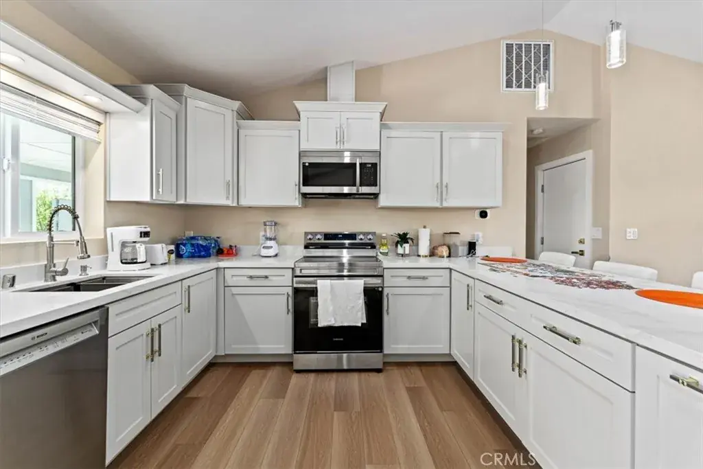 spacious kitchen boasts sleek quartz countertops, soft-close cabinetry, and stainless steel appliances—perfect for entertaining or