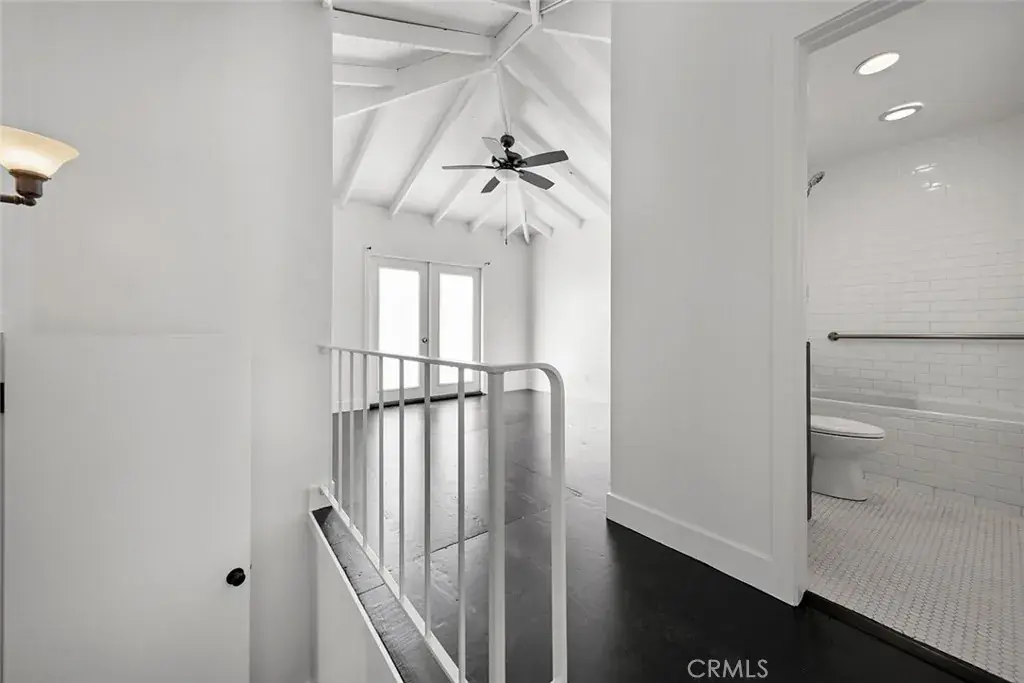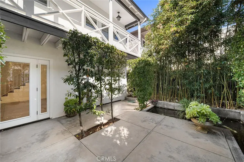 Back unit: Coveted, quiet South-of-PCH location just two blocks from the Goldenrod Pedestrian Bridge. Refined plantation-style stand-alone residence showcasing thoughtfully reimagined 1960s architecture. Flexible floor plan offers three bedrooms and three bathrooms, including a generous upstairs primary suite with wrap-around deck, ideal as a den or family room. Vaulted, beamed ceilings grace all bedrooms, complemented by a curated mix of wood and cement flooring. Seamless indoor-outdoor living throughout, with all bedrooms and principal rooms opening to decks, patios, and landscaped garden spaces. Exceptionally private garden retreat with built-in koi pond. One-car covered carport and ample street parking. A distinctive, design-forward residence offering privacy, character, and timeless appeal.