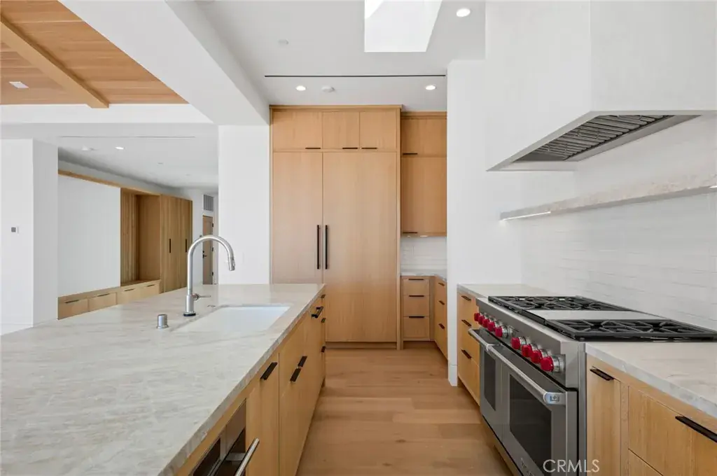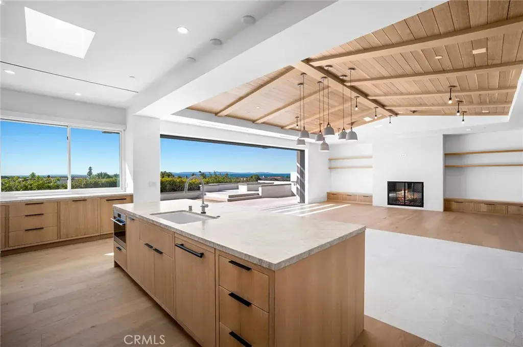 Well-positioned in the sought-after Cameo Highlands community of Corona Del Mar, this newly-built home is absolutely sure to impress. Perched on an ocean-view terrace with spanning ocean horizon, year-round sunsets, & Catalina Island views from the major living spaces, opportunities like this are rare to the market. Designed by highly-acclaimed architect Mark Teale with interiors carefully selected by Raili CA Design, this beyond-desirable home offers several key values: lightly occupied since newly constructed in 2023, a modern, ranch-style floor plan all on one level with no interior steps (4 bedrooms & 4.5 bathrooms), floor-to-ceiling walls of glass with obscured privacy gates in the entry atrium, white oak-beamed / vaulted ceilings and skylights in one generous great room, two extremely high-end kitchens (bonus butler’s kitchen), massive disappearing slider doors – seamless to the generous rear patio with sunset-views over Catalina Island around the fire pit or from the fire-warmed dining, natural materials including a variety of stone, smooth stucco, rustic wood & steel elements, rift-white-oak custom cabinetry, built-ins, doors, ceilings, and stylish tiling throughout. All bedrooms are ensuite, one doubling as a bonus room or home office with custom built-ins. The primary suite features major ocean views from bed, custom window treatments, walk-in closet with custom wardrobe build-out, and a truly amazing primary bathroom with dual vanities, curbless walk-in shower, soaking tub, and private water closet. A dedicated laundry room equipped with newer machines, a solar system for reduced expenses, surround sound, air conditioning, and dual-access to the generous 725 SF 3-car garage, this home is truly dialed-in. Very private on the ocean-view side of the street and no one immediately behind, it’s a special place to reside. Cameo Shores just below offers private beach access for the community, direct access to Crystal Cove State Park nearby, neighborhood parks, and one of the most prestigious addresses in all of Corona Del Mar. The cost of ownership far exceeds this opportunity at such an impressive and effectively new home – rare to come by.