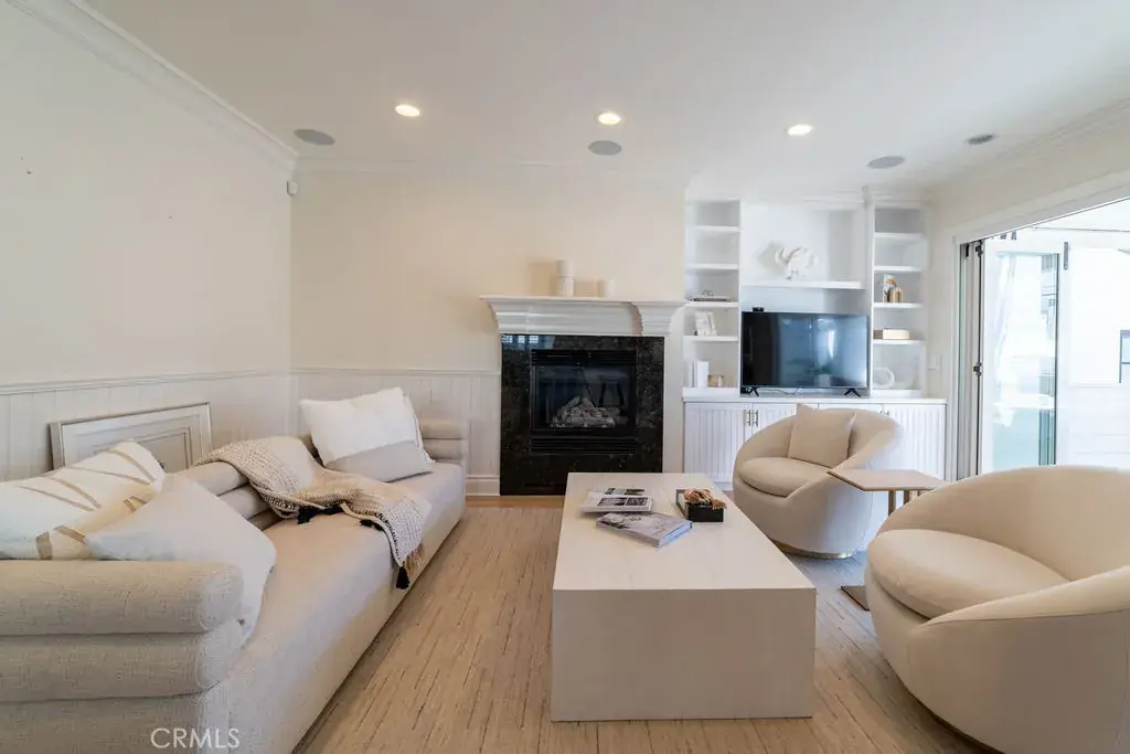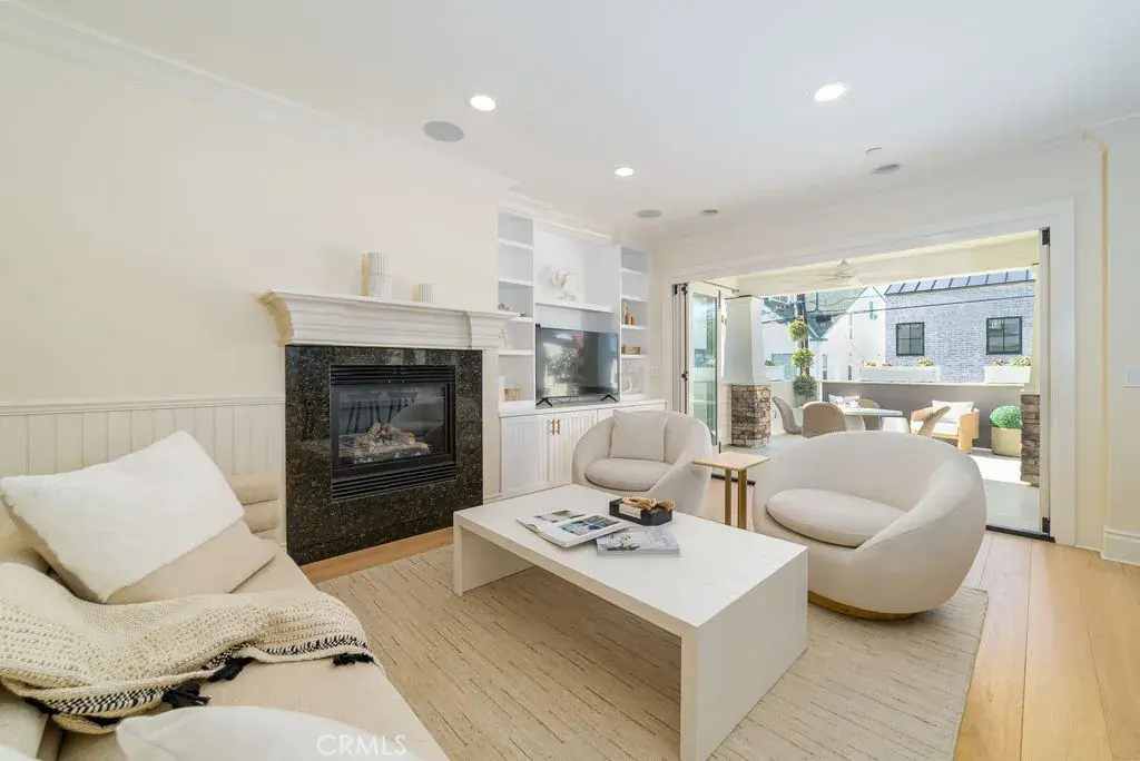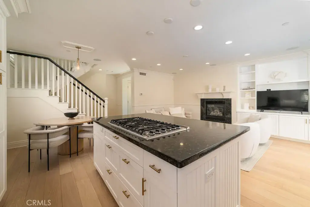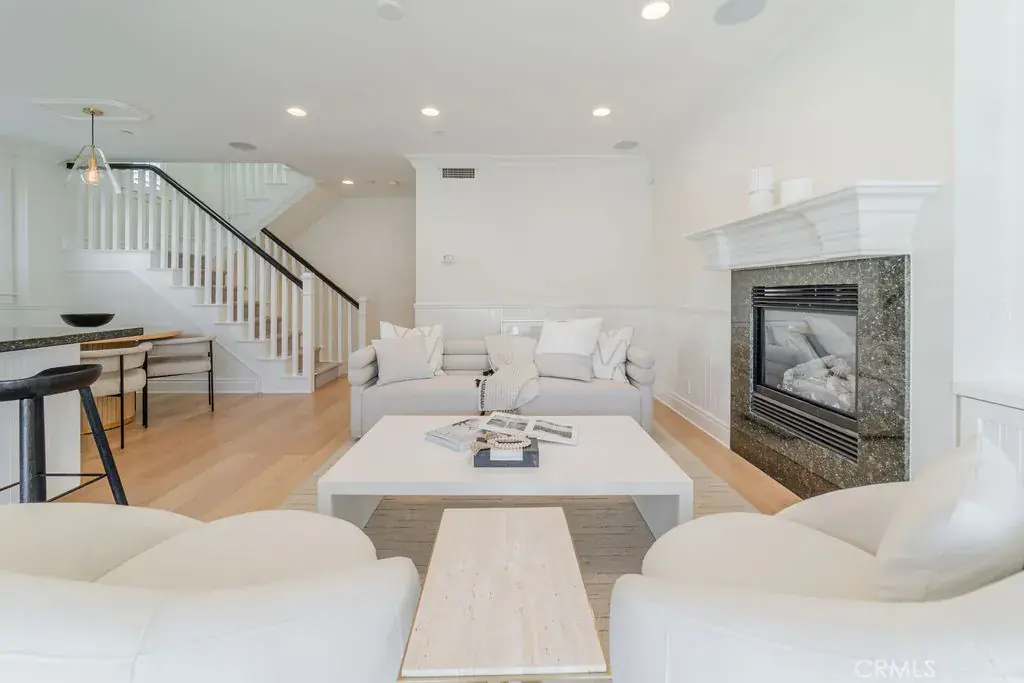 The home features La Cantina bi-fold doors that open up to a spacious covered loggia, perfect for seamless indoor-outdoor entertaining. The upper deck off the master suite offers breathtaking views of the city lights, ocean, and dreamy sunsets. With only one shared wall between the front unit’s garage and this unit’s stairwell, privacy is a key benefit.