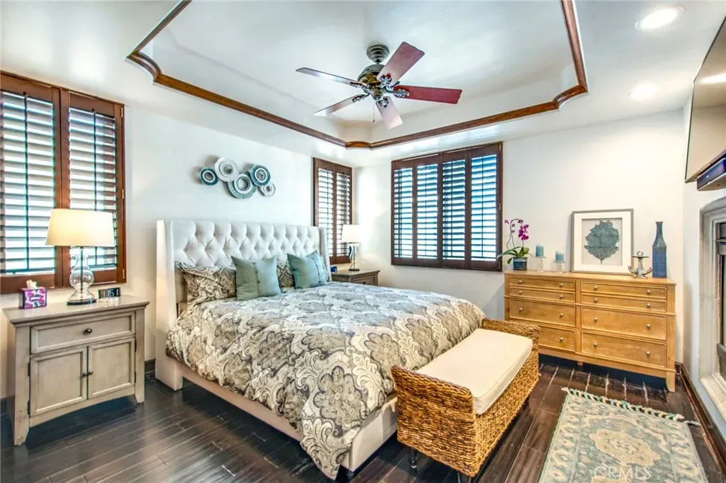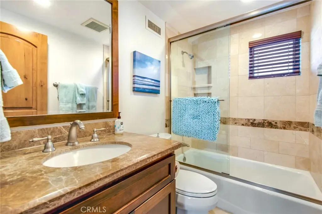 Discover Coastal Living in Corona Del Mar. This stunning, fully furnished back unit is situated on one of the most sought-after streets in Corona Del Mar and can also be delivered unfurnished. Offering 2 bedrooms, 2 full bathrooms, and exceptional features, this home is a perfect blend of comfort and functionality. Step inside to find soaring cathedral ceilings, fresh paint, and recessed lighting that create a bright and airy ambiance. The open-concept living and dining areas feature a stone fireplace and connect seamlessly to the kitchen, complete with natural granite countertops and newer cabinetry, ideal for everyday living and entertaining. The primary suite is a true retreat, featuring a two-way fireplace, dual closets, and an elegant en-suite bathroom with a dual-sink vanity, frameless shower, and spa tub. The top-floor secondary bedroom is complemented by a small office nook and a full bathroom. Outdoor living spaces include a spacious open-air California room enclosed with movable glass and wood doors, and a large rooftop deck. Please note that the California room and rooftop deck square footage are not included in the property total. Additional highlights include hardwood flooring, Travertine accents, custom shutters, and parking for two vehicles (1-car garage and covered carport). Situated in the heart of Corona Del Mar Village, this property offers unparalleled access to world-famous beaches, Lookout Point, the landmark harbor, and premier shopping and dining. This exceptional property combines comfort, convenience, and coastal charm.
