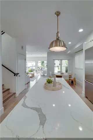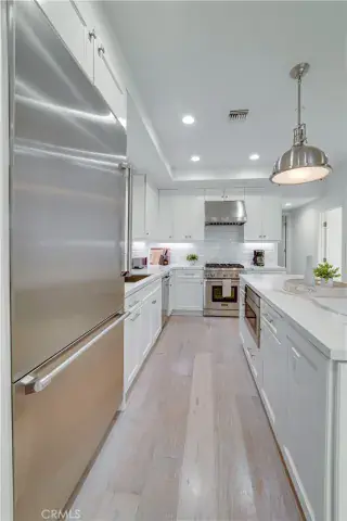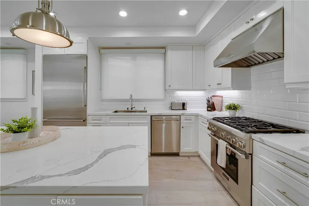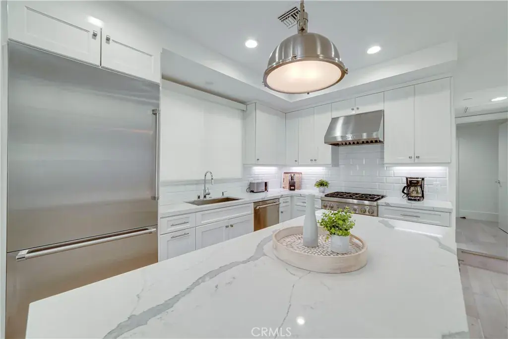 The chef’s kitchen is a dream, appointed with high-end Thermador appliances, gas range, modern quartz countertops, and abundant space for gatherings.Upstairs, the primary suite is a private retreat, complete with a gas fireplace, walk-in closet, and a wraparound view deck. The spa-inspired bath includes dual sinks, quartz counters, soaking tub, and separate shower.