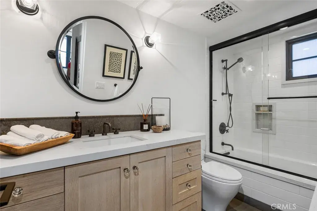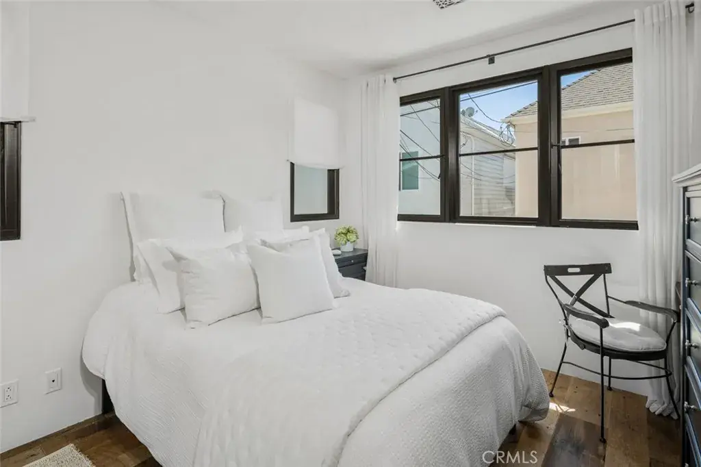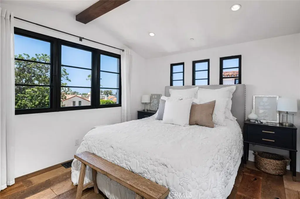 Beautifully finished Spanish Modern rear residence offering 2 bedrooms, 2 bathrooms, and 888 sq ft plus 205 sq ft covered patios of coastal living in the heart of Corona del Mar’s Flower Streets. The home features stunning wood floors, steel-framed windows, and an inviting turquoise kitchen with polished concrete countertops, gas range, and refrigerator. Quality craftsmanship is reflected throughout with premium bath fixtures, limestone flooring in the upper-level bath, Nest climate control, tankless water heater, and water softening system. Enjoy exceptional outdoor living with both a covered rooftop deck and an open rooftop terrace, each capturing ocean and Catalina views. Parking includes a one-car garage plus one covered carport. The property’s exterior enhances the ambiance with architectural details best appreciated in person. A rare opportunity in an unbeatable coastal location offering flexibility, charm, and elevated design.