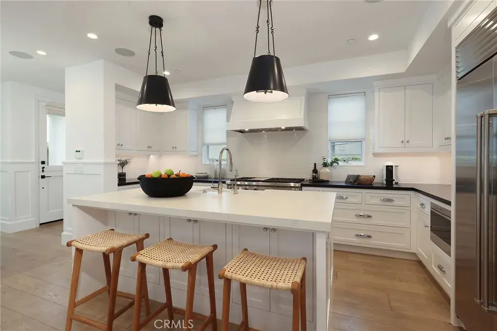 Located in the highly sought-after Flower Streets of Corona del Mar Village, 617 Narcissus is a beautifully crafted, turn-key coastal residence offering 3 bedrooms and 3 baths. Designed by Brandon Architects and built by Patterson Homes, the home showcases timeless architecture, thoughtful design, and quality craftsmanship throughout. The light-filled open-concept floor plan creates seamless indoor-outdoor living. A wall of sliding glass doors in the living room opens fully to the front patio, allowing ocean breezes and natural light to flow effortlessly into the main living spaces—ideal for both everyday living and entertaining. The chef’s kitchen connects seamlessly to the dining and living areas, enhancing the home’s inviting and functional layout. Upstairs, the private primary suite serves as a peaceful retreat, complete with its own balcony—perfect for morning coffee or quiet evenings. Two additional bedrooms are well-appointed and offer flexibility for guests, family, or office space. The expansive rooftop deck is a true highlight, providing an exceptional setting for entertaining, dining al fresco, or enjoying coastal sunsets in one of the Village’s most desirable neighborhoods. Just moments from world-class beaches, dining, and boutique shopping, 617 Narcissus offers refined coastal living in the heart of Corona del Mar.