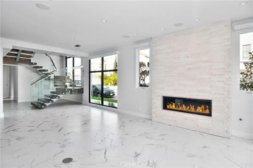 Stunning soft-contemporary residence offering 3 Bd / 3Ba, a rooftop deck, one-car garage, carport, and EV charger hookup. Designed for modern living, the open-concept floor plan features a striking stone fireplace anchoring the living room, seamlessly connecting to the dining area and gourmet kitchen. The sleek kitchen is appointed with high-end stainless steel appliances, a generous breakfast bar/island, and modern finishes, perfect for both everyday living and entertaining. Situated on a desirable corner lot, the home is filled with natural light and showcases expansive pocket sliding glass doors that open to a spacious front-yard patio, creating effortless indoor-outdoor living. The main level includes a versatile bedroom ideal for guests or a home office. Upstairs, the primary suite impresses with vaulted ceilings, a luxurious soaking tub, and a walk-in closet with custom built-in organizers. The third level features a partially enclosed rooftop deck offering charming village views, an ideal retreat for relaxation or entertaining. Ideally located within walking distance to the village, beach, parks, shops, and restaurants, this home combines sophisticated design with thoughtful upgrades, including built-in closet systems and EV charger hookup, delivering both style and convenience in a prime coastal setting.
