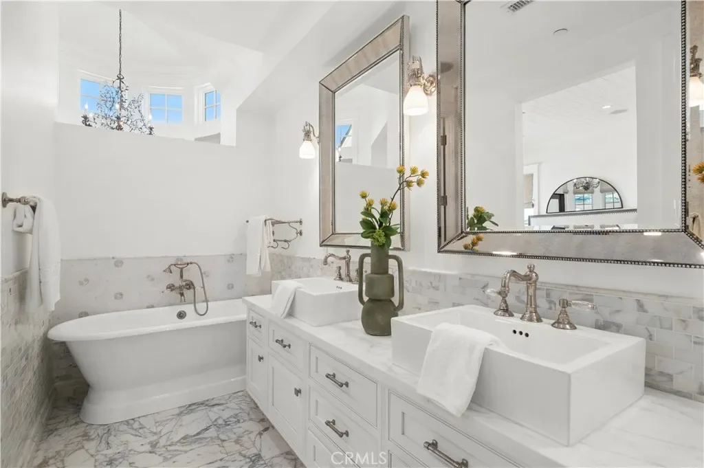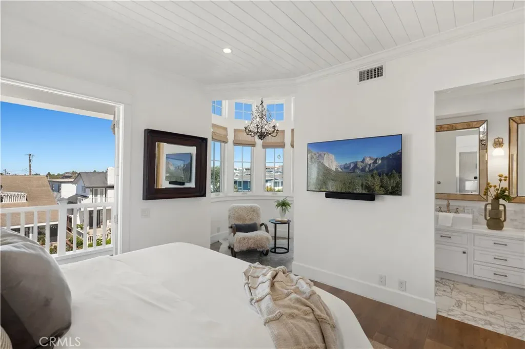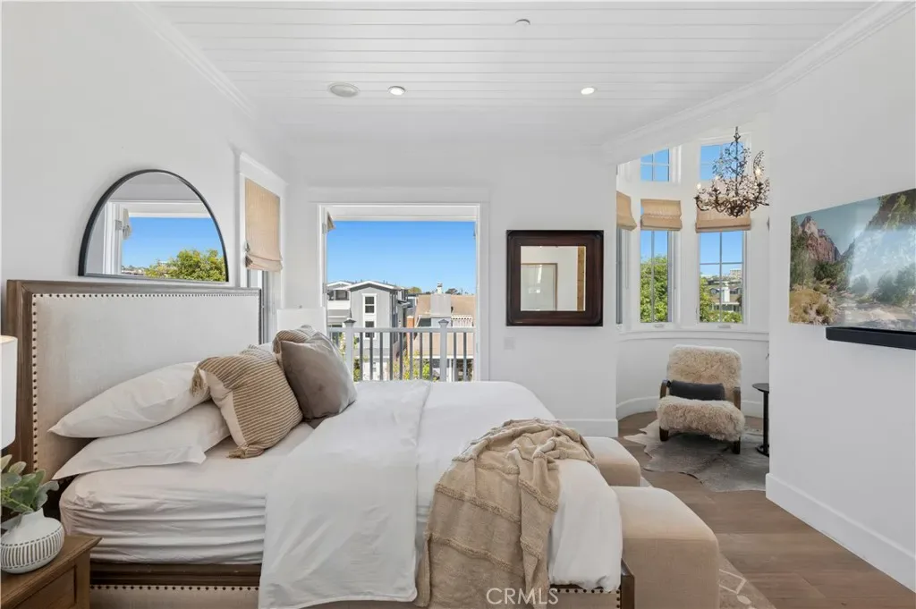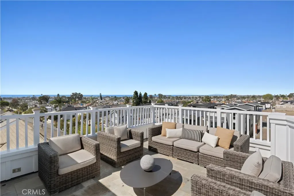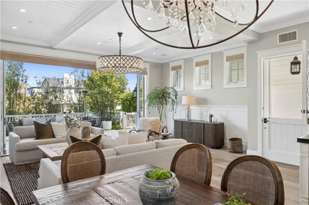 This exceptional Village residence is ideally positioned within one of the area’s most coveted enclaves, set along the prized 700 block in an elevated setting where sweeping ocean views unfold from the upper level. Thoughtfully curated with an emphasis on both design and craftsmanship, the home showcases a refined coastal aesthetic defined by wide-plank distressed wood flooring, elegant wainscoting, soaring ceilings, and organic lighting. Crisp white cabinetry, paneled ceilings, and expansive windows further enhance the bright, inviting interiors. The great room effortlessly blends comfort and sophistication, anchored by a fireplace and framed by disappearing doors that open to a quintessential front courtyard lined with privacy hedges. An elegant dining area flows seamlessly into the gourmet kitchen, appointed with ample custom cabinetry, statement lighting, a designer backsplash, pot filler, a six-burner range with griddle, professional-grade appliances, an oversized center island with breakfast bar, and a walk-in pantry. A private covered central courtyard adds a layer of indoor-outdoor living. Complete with a viewing balcony, the primary suite features a charming, windowed turret seating area and a luxurious bath featuring a soaking tub, stone rain shower, and dual vanities. Additional highlights include two spacious ensuite secondary bedrooms, a fully equipped laundry room, and an upper-level family or game room, providing flexibility. A highly sought-after rooftop deck offers panoramic views of the Pacific Ocean, Catalina Island, city lights, and Fashion Island. Designed for year-round enjoyment, the rooftop features a covered loggia with heating alongside a generous entertaining area to take in the sun and coastal vistas. Ideally located near Fashion Island, prominent dining, boutique shopping, and world-class beaches, this home embodies the essence of tranquil coastal living.