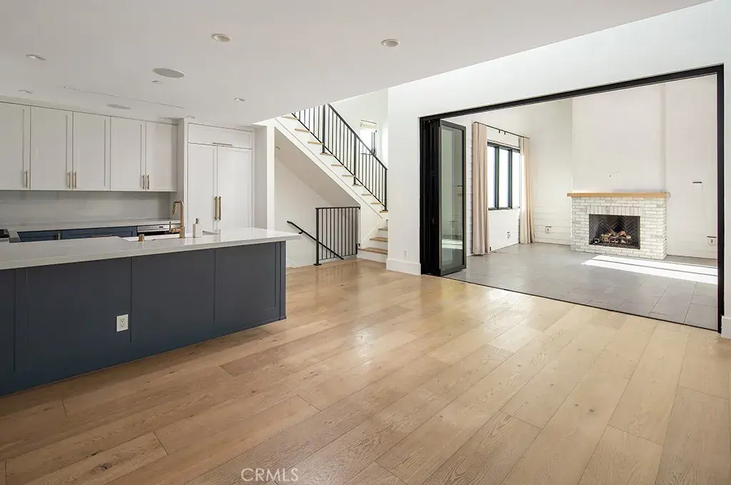 Located in the heart of Corona del Mar’s Village, this contemporary coastal retreat unfolds with ocean views and a sense of calm refinement. The residence is thoughtfully composed to honor light, space, and seamless flow, creating an environment that feels both sweeping and intimate, ideal for easy living and effortless entertaining. The kitchen features deep blue cabinetry, a balanced mix of open and concealed storage, farmhouse sink, newly refreshed hardware, and Wolf and Sub-Zero appliances. Living spaces transition gracefully through La Cantina bi-fold doors to a private outdoor sanctuary, where a minimalist fire feature anchors evenings; spent beneath coastal skies, blurring the boundary between interior comfort and open air.