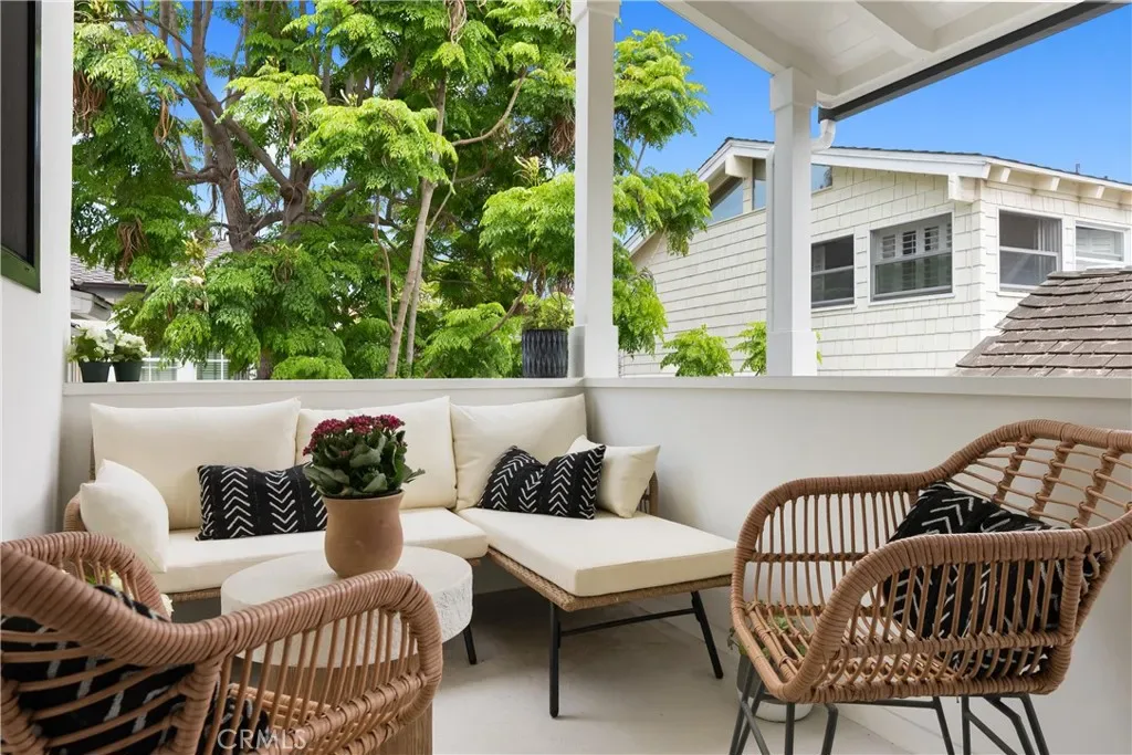 A private, brick-lined entry with fountain and lush landscaping opens to a shaded patio designed to capture ocean breezes. Additional features include a private carport, in-unit washer and dryer, and fully furnished interiors. Thoughtfully equipped for extended stays with linens, kitchenware, cookware, dishes, and everyday essentials. Conveniently located near local shops, restaurants, parks, beaches, and just minutes from Balboa Island and Fashion Island.