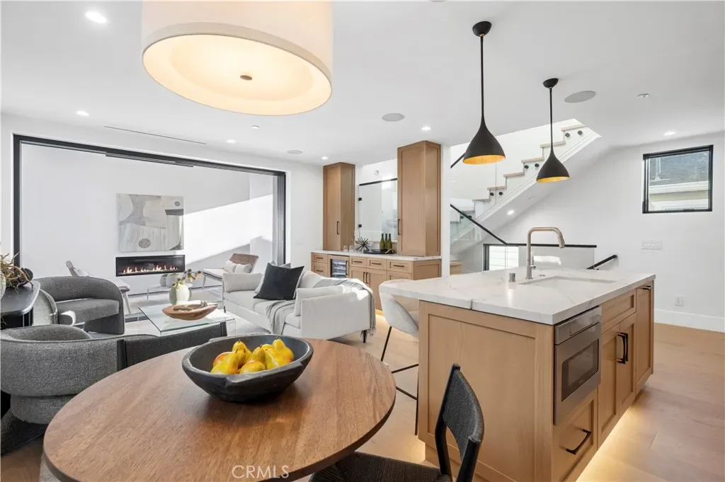 Driven by a passion for luxury residential design, DeCarrier, Montesantos Builders and Amy Mitchell Design present this signature new-construction residence – an inviting expression of refined coastal living in one of Southern California’s most cherished seaside communities. Thoughtfully designed for both beauty and ease, this 2-bedroom, 2.5-bath home offers a seamless blend of sophistication and comfort. Soaring ceilings, European white oak wide-plank flooring, and abundant natural light create a warm, airy atmosphere throughout. The open-concept main living level centers around a stunning gourmet kitchen with custom cabinetry, quartzite countertops, Sub-Zero and Wolf appliances, and an oversized island – perfect for casual mornings or lively evenings with friends. Living and dining spaces open effortlessly through disappearing glass sliders to a fireplace-anchored California room, inviting year-round indoor-outdoor living. The primary suite serves as a peaceful retreat, featuring a custom walk-in closet and a spa-inspired bath with marble finishes, dual vanities, and a spacious enclosed shower. Upstairs, a secondary ensuite bedroom opens to two rooftop decks – one ideal for quiet moments, the other designed for dining, entertaining, and sunset gatherings. Just moments from Big Corona Beach and the village’s boutiques and restaurants, this exceptional home delivers the quintessential Corona del Mar lifestyle.