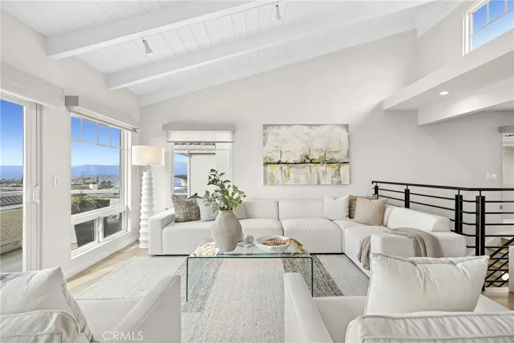 Commanding breathtaking 180-degree ocean and harbor views from nearly every vantage point, this beautifully remodeled 2-bedroom + office Seaside residence is a rare offering in the heart of Corona del Mar Village. Walls of glass and multiple viewing patios frame the coastline and water below, creating an ever-changing backdrop from sunrise to sunset, just one short block from the beach. Designed to showcase its extraordinary setting, the open living room is defined by soaring vaulted, beamed ceilings, clerestory windows, and a fireplace with an expansive hearth and mantle, all positioned to capture the sweeping views. The stunning kitchen features expansive marble quartz countertops, generous cabinetry, and a wrap-around breakfast bar, ideal for entertaining while taking in the scenery. The spacious primary suite is a true retreat, offering spectacular ocean views and a luxurious bath complete with a spa tub, dual vanities, a dedicated makeup vanity, and a well-appointed walk-in closet. A rare 3-car garage adds both convenience and value to this coastal residence. Live the Village lifestyle on one of Corona del Mar’s most coveted stretches, with unparalleled access to world-class beaches, acclaimed restaurants, charming boutiques, parks, the Oasis Senior Center, and premier shopping, all just moments from home.
