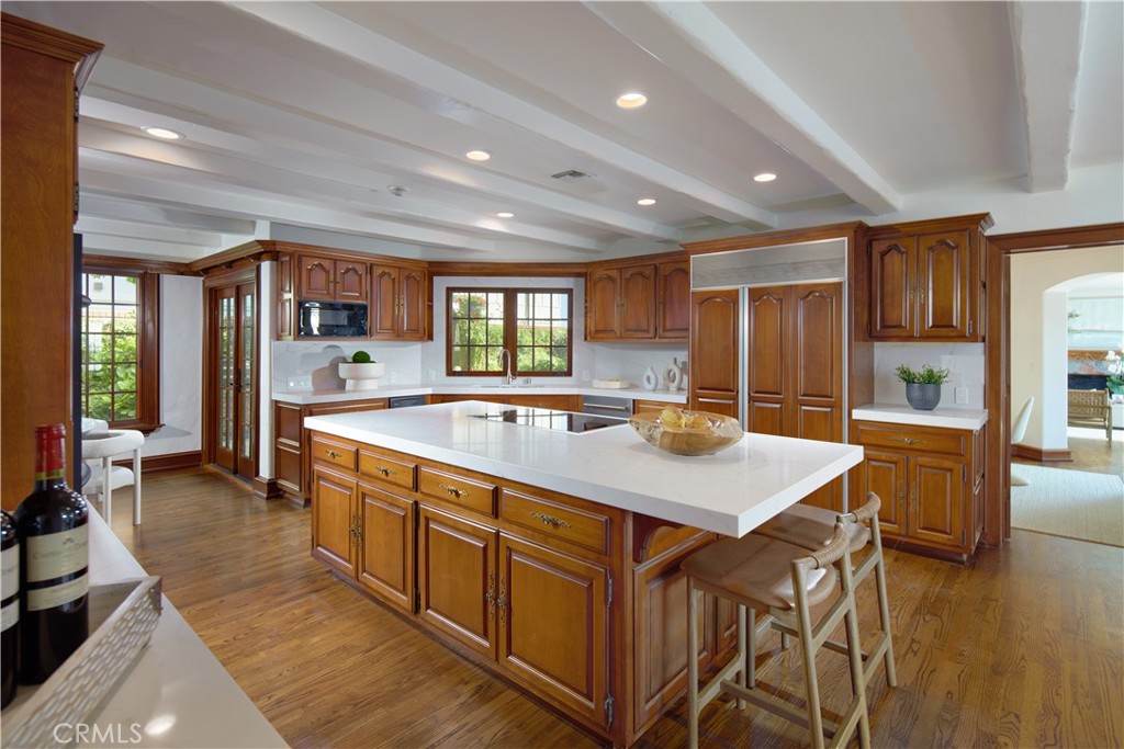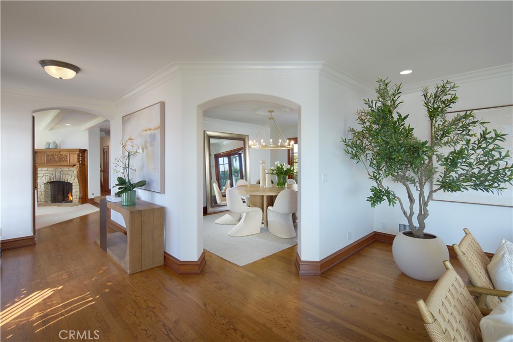 Boasting charm, a prime location, and stunning views, this coastal gem by renowned architect Brion Jeannette is available for the first time and offers an unparalleled living experience in the heart of Corona del Mar with 96′ of west-facing frontage. Designed to capture uninterrupted vistas of the Pacific Ocean, Catalina Island, Peninsula, city lights, and Newport Harbor Jetty, this French Country-style cottage is situated on a unique 65′ deep corner lot, spanning across two combined lots– which cannot be duplicated today. Spanning approximately 4,770 square feet, the sun-filled interiors feature four bedrooms and three-and-a-half bathrooms. A charming living room, warmed by a wood-burning fireplace, seamlessly flows into a formal dining area. Adjacent, is a secondary living room where a garden window bathes the brick-surround fireplace in natural light. This inviting space opens to a delightful kitchen, complete with a sunny breakfast nook, an island, wood cabinetry, and new quartz countertops. The main level is rounded out by a powder room and an en suite bedroom offering a jacuzzi tub. Throughout the home, you’ll discover character in every corner—antique leaded glass, beamed ceilings, wood flooring, new carpeting, and crown molding. Wood-framed doors open to a rare, beautifully landscaped backyard with multiple patios and a barbecue area, offering effortless grand-scale entertaining in a serene setting where ocean breezes and tranquility converge. Upstairs, three bedrooms await, including the sumptuous primary suite. This retreat offers an ocean and city lights view balcony, cozy fireplace, oversized marble walk-in shower, jacuzzi tub, marble vanity area with dual sinks, and a bonus room that could serve as an exercise space. Down the hallway, a private office with built-in shelving and another bonus room with an en suite full bath provide versatile spaces for work or leisure. Atop the home, the rooftop deck offers breathtaking views of the world-famous surfing spot, “The Wedge,” where waves reach captivating heights. An oversized two-car garage with laundry completes the home. With panoramic views spanning the ocean horizon, Catalina Island, and Newport Harbor, this residence is perfectly positioned to appreciate Newport Beach and Corona del Mar’s most iconic sights. All this, while being just moments from renowned beaches, Lido Marina Village, and John Wayne Airport.