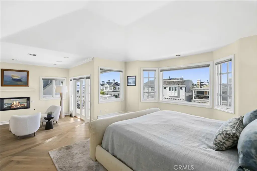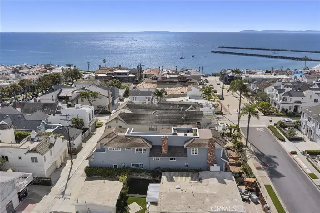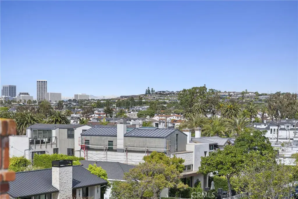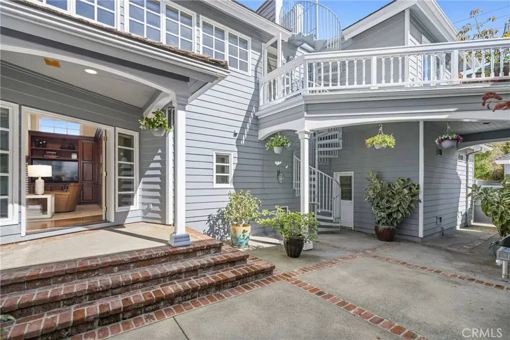 Set on an expansive 45 foot wide lot at the highest point of the street, this exceptional coastal residence captures sweeping ocean views and effortless indoor-outdoor living. A sprawling brick front patio serves as a quintessential seaside welcome framed by ocean vistas and seamlessly connected to the living room and formal dining room through walls of glass. Inside, the living room showcases coffered ceilings, a statement fireplace with classic mantel, custom built-ins. Thoughtfully appointed, the entertainer’s kitchen supplies a Wolf oven, microwave, and six-burner range, reverse osmosis, granite countertops, a center island, appliance garage, walk-in pantry, and built-in desk. A sunlit breakfast nook is surrounded by windows overlooking the private backyard, complete with a built-in BBQ, outdoor shower, and spa plumbing, creating a natural extension of the home’s entertaining spaces. The adjacent family room offers another fireplace, custom built-ins, and a wet bar, while a dedicated wine room accommodates 500+ bottles for the discerning collector and entertainer. Additional main-level amenities include a spacious powder room, a private ensuite bedroom with tub and shower, and a well equipped laundry room with sink and abundant storage. The three car garage features soaring ceilings and storage, while whole home conveniences such as central vacuum, hot water circulation, and dual A/C systems enhance everyday comfort. A dramatic spiral staircase rises to a central gallery hall, introducing the home’s private bedroom level. The primary wing offers ocean views, a viewing balcony, a cozy seating area with a double-sided fireplace shared with the spa-inspired bath, and a morning coffee bar designed to savor the scenery without ever leaving the suite. Dual closets, including a generous walk-in, provide ample wardrobe storage. The primary bath features a jetted soaking tub, walk-in shower, dual vanities, makeup station, and a discreet TV cabinet. Three additional bedrooms complete the upper level: two connected by a Jack-and-Jill bath, and a fifth bedroom suite with its own tub and shower and private deck. For sunset gatherings and elevated coastal living, the spectacular rooftop deck delivers panoramic vistas spanning the Pacific Ocean, Fashion Island, the golf course, and shimmering city lights.