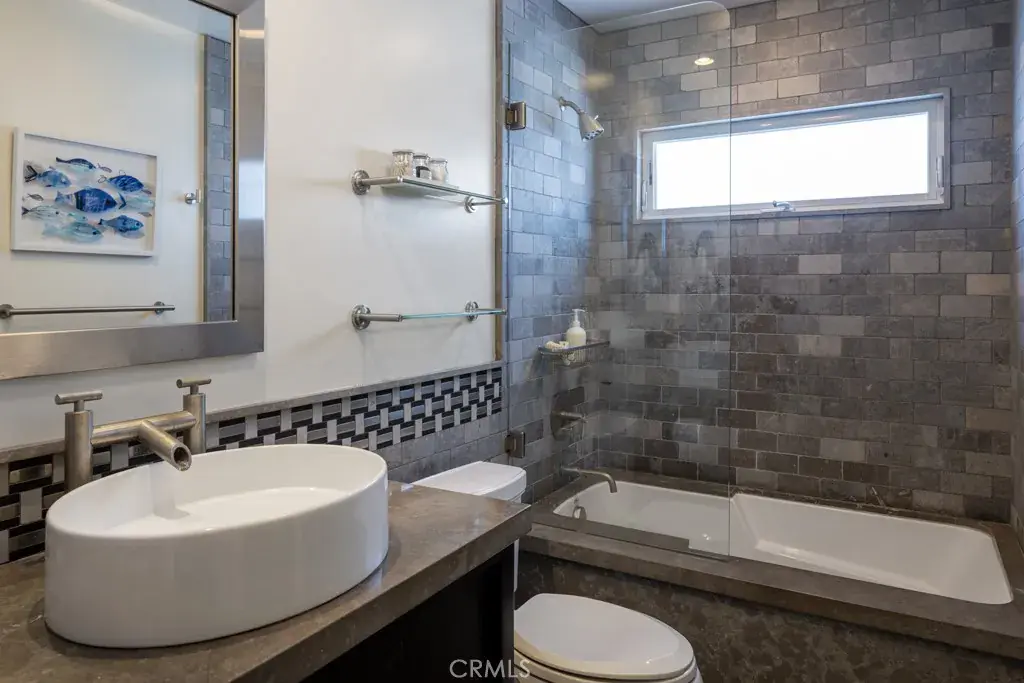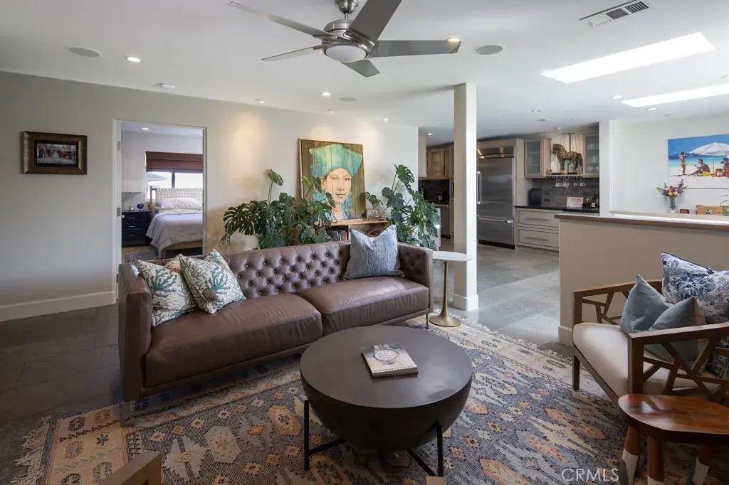 Set on the oceanside of Pacific Coast Highway in Corona del Mar Village, this three bedroom back unit home sits one block from Ocean Boulevard and offers quiet privacy with close proximity to beaches, restaurants, and all the best of the Village. The thoughtfully remodeled residence combines quality materials with an expansive sense of livability. The kitchen is appointed with Thermador appliances, limestone surfaces, and custom cabinetry. The great room includes newer windows and a gas fireplace. The primary suite features an oversized closet and a bathroom with dual vanities. All main living spaces are located on a single level, creating an easy and functional flow throughout the home. Additional features include an inside laundry room with sink and storage and a rare enclosed two car tandem garage with direct access that provides exceptional storage and security. Set within moments of the beach, restaurants, and neighborhood shops, this residence delivers a convenient oceanside Village living experience in a quiet and private back unit setting.