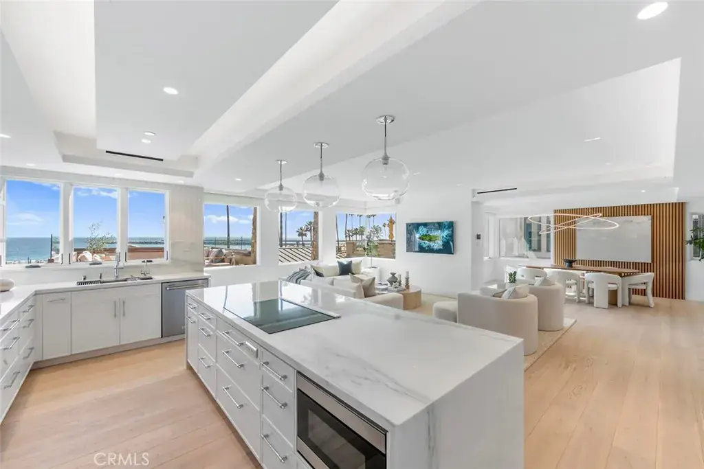 Few places along the California coastline are as coveted or as discreet as Breakers Drive. Tucked behind private gates above the sands of Big Corona Beach, this rare oceanfront enclave is known to only a fortunate few, and opportunities to purchase here are exceedingly limited. Introducing 3130 Breakers Drive, EXTENSIVELY RECONSTRUCTED, REIMAGINED AND NEVER LIVED IN POST RENOVATION. This OCEANFRONT RESIDENCE harmonizes architectural refinement with an effortless coastal lifestyle in the heart of Corona del Mar. TAKEN DOWN TO THE STUDS and EXPANDED under the direction of DMA Designs with curated interiors by Sandra Vila of SVDH Studio, the home showcases sweeping ocean, coastline and Newport Harbor jetty views from nearly every level, including the kitchen, family room, dining area, oceanfront terraces and private primary suite. An inviting entry with stone flooring and tailored paneling sets a sophisticated tone, accented by designer lighting and concealed storage for beach essentials. The open-concept kitchen captures dramatic blue-water vistas and features custom cabinetry, polished Calacatta marble, Wolf induction range and convection oven, paneled Sub-Zero refrigeration and wine storage and a large island designed for both daily living and entertaining. The adjoining family room is finished with French oak flooring, architectural wood accents and invisible surround sound. This space opens to an elevated Ipe wood viewing deck that appears to float above the shoreline and provides an unforgettable setting for sunsets and ocean breezes. The upper level is dedicated to the ocean-view primary suite, a private retreat with exposed beams, bifolding doors to a private terrace and a spa-caliber bath wrapped in Calacatta marble with an oversized glass-enclosed shower. The lower level offers two guest bedrooms with built-in details and a beautifully appointed bath. Modern comfort is elevated through a Savant smart-home system that controls lighting, sound, climate and shades, along with all-new mechanical, plumbing and electrical systems. An elevator services all levels and the property includes a garage plus carport parking. Private beach access is exclusive to residents of this gated community. With its premier oceanfront setting and refined coastal design, 3130 Breakers Drive presents a rare offering along one of Southern California’s most iconic stretches of coastline.