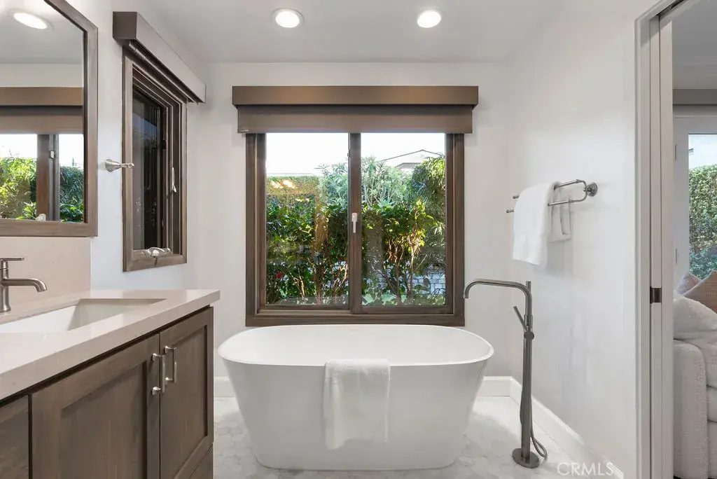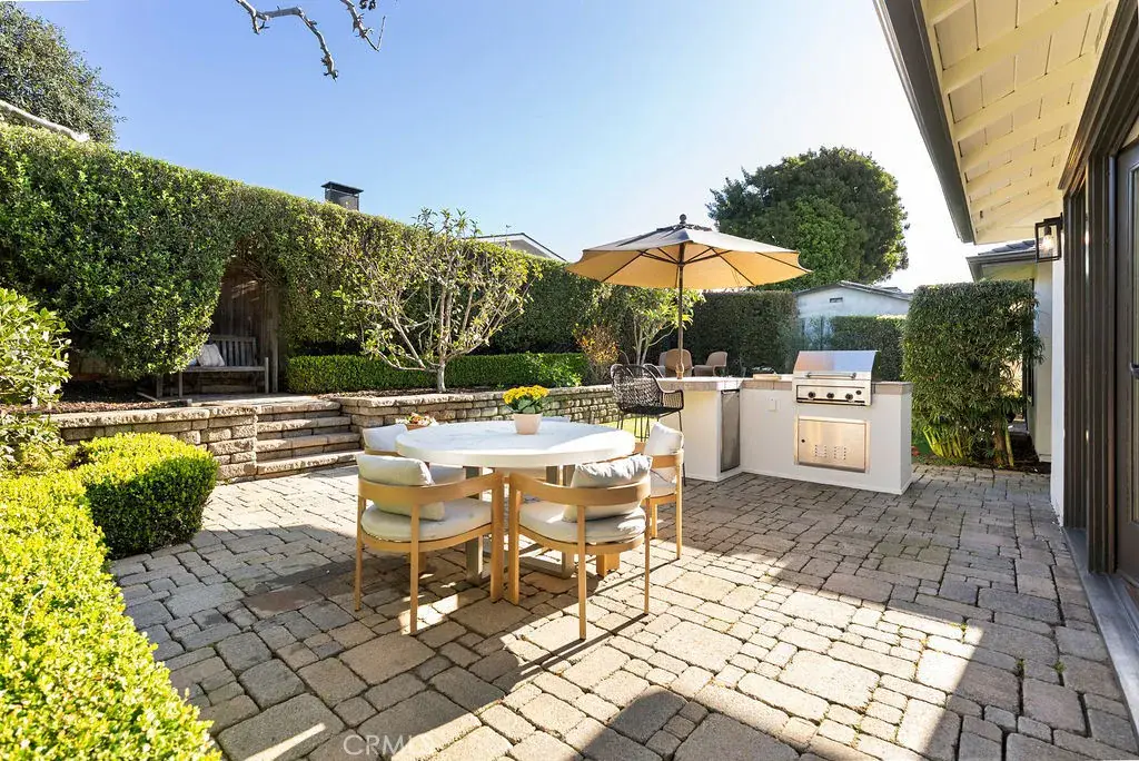 Tucked behind a private front gate in the seaside enclave of Corona Highlands, 453 Seaward offers the perfect blend of coastal charm and serene comfort. From the moment you step through the private front courtyard, you are enveloped in a sense of tranquility that carries throughout this recently updated three-bedroom, two-bathroom home. The spacious great room, bathed in abundant natural light from both the front and back of the property, serves as the heart of the home, featuring rich hardwood floors and a wood burning fireplace that invites cozy evenings. For the culinary enthusiast, the kitchen showcases stainless steel appliances, a wine fridge, and a large peninsula perfect for morning coffee, family breakfasts, or evening entertaining. Retreat to the primary suite, a private oasis offering a walk-in closet, a spa-like bath with a deep soaking tub and standing shower, and direct access to the backyard. This ultra-private outdoor haven is framed by mature, lush landscaping. It offers multiple seating areas, a grass lawn for activities, and a built-in barbecue and refrigerator for effortless al fresco dining. Modern comforts abound, including a security system, A/C, a dedicated laundry room with garage access, two-car driveway, ample street parking, and a two-car garage with freshly epoxied floors and ample storage. Beyond your doorstep, the lifestyle is unparalleled. Enjoy year-round sunny weather and the luxury of being just a half-mile from the beach, with private beach access. This central location places you in the heart of the Orange County coast, keeping you close to Laguna Beach, Newport Coast, and within walking distance of the charming galleries, boutiques, and high-end dining of CdM Village. A short drive connects you to the elite shopping of Fashion Island, the nostalgia of Balboa Island, and the nation’s top-rated schools. This is more than a home; it is a rare opportunity to live the quintessential California coastal dream in a space that feels both updated and classically comforting.