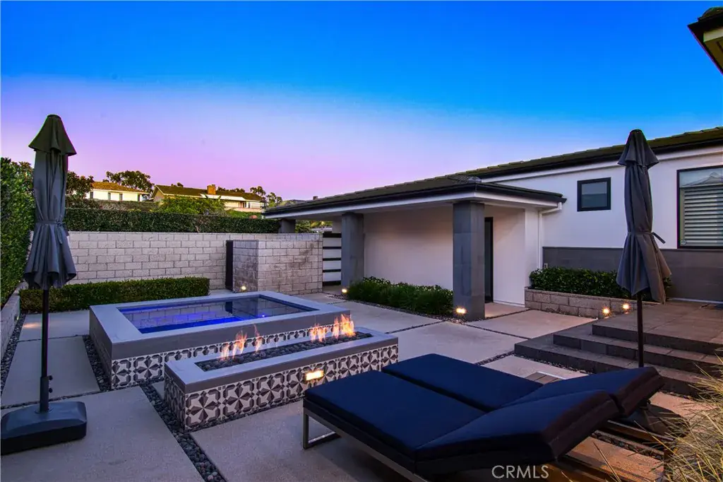OCEAN VIEWS & soft contemporary design, nestled in the coveted Harbor View Hills South of Newport Beach, Ca. While within 2 minutes of CDM village and everything Fashion Island has to offer, the community of Harbor View Hills South has large and quiet streets, tucked away from the hustle and tourist bustle of traditional CDM Newport. A complete new build in 2017, the 2,910 sq ft single story home has 4 bedrooms, 3.5 baths with owned solar. A private gated courtyard welcomes you, encased in mature hedges, housing the oversized jacuzzi and a built-in contemporary fire pit. Entering the home, the foyer has a stunning lighting pendant. Attention capturing ocean views pull you into the living room with a gas inlay fireplace and floating wood beams adorning the ceiling that are themselves a piece of art. The living room bar is complete with 2 beverage drawers and a bar sink. Moving through the living room, your eye catches the custom European SieMatic kitchen cabinetry, Subzero 100+ bottle wine fridge, Subzero built-in and paneled refrigerator and double oven Wolf range. The dining room hosts Catalina sunset views daily. The back patio deck, complete with another built-in contemporary fire pit, is a riveting experience of 365 days a year sweeping views. The primary suite was designed for privacy from the rest of the home, including double walling the wall that is shared with the living room for added sound dampening. As you walk through the primary’s door, you find the primary ensuite complete with a beautiful freestanding tub, contemporary shower, separate vanities and 1 of the 2 primary closets. The bedroom is down the primary hall, as you are drawn in by the ocean views. The additional bedrooms are located on the other side of the home. They include 2 sizable bedrooms with ensuites and an additional bedroom that was designed for the sellers’ personal use as a den. This space offers convertible options for the new owner as a bedroom, den, office or gym. This room does not have a built-in closet, but was designed with the capability of building in a closet and still maintaining a comparable size to the other secondary bedrooms. The 3 car garage is fully finished and offers maximum storage. When home meets unmatched views of the beautiful Newport Beach coastline, we welcome you to come take a look.