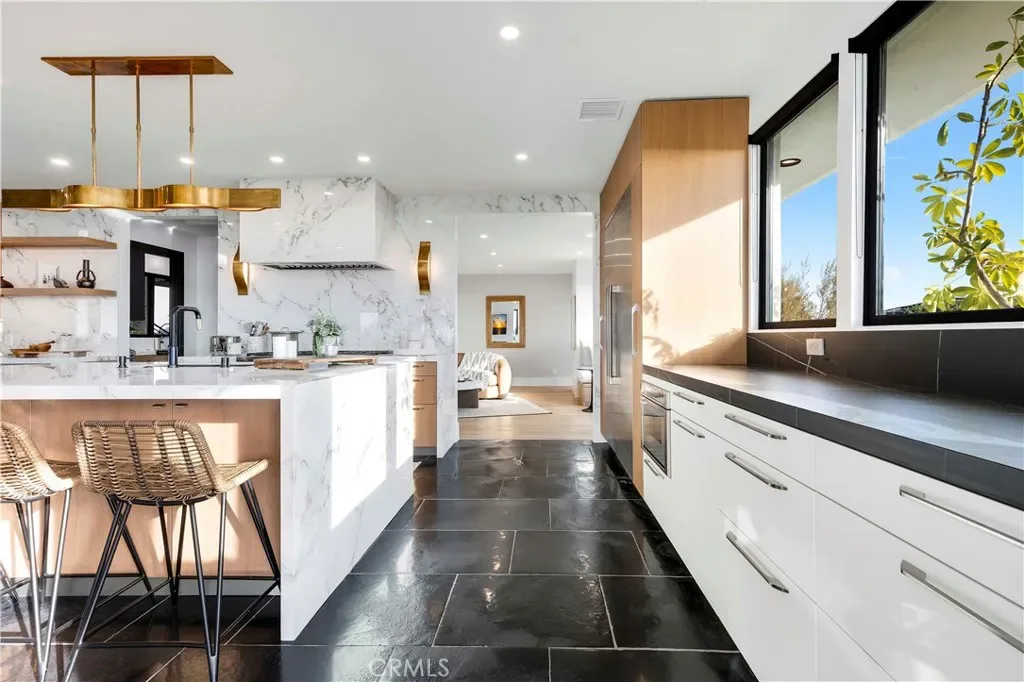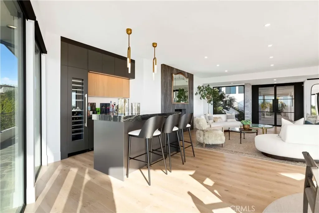 This fully remodeled Harbor View Hills estate offers some of the most breathtaking panoramic views in all of Newport Beach and Corona del Mar. From the Pacific Ocean and Newport Harbor to the iconic Balboa Pier and Pavilion, Fashion Island, and even the Los Angeles skyline on a clear day, the vistas from this rare property are simply unforgettable. A gated walkway lined with fragrant lemon trees leads to a tranquil courtyard where a sparkling pool and spa create a private resort-like setting. A grand entry welcome you inside, where expansive living spaces are designed to capture the home’s extraordinary coastal views from the moment you enter. The main residence features four spacious bedrooms, three full bathrooms, and a guest powder room. Above the three-car garage, a versatile fifth room with its own full bathroom and walk-in closet offers the perfect space for a guest suite, office, gym, or recreation room. At the heart of the home is a chef’s kitchen with top-of-the-line finishes, a built-in breakfast nook, and a butler’s pantry complete with an additional gas range—ideal for entertaining. The formal dining room and a separate casual dining area near the wet bar both showcase sweeping views, making every meal feel like a special occasion. Designed for effortless entertaining, the full wet bar features elegant seating and a wine refrigerator, creating the perfect space to host guests while enjoying the spectacular backdrop. The spa-inspired primary bathroom serves as a private retreat, highlighted by a stunning centerpiece soaking tub and luxurious finishes throughout. Additional conveniences include a spacious laundry room with a sink and an extra refrigerator/freezer. Situated on an expansive lot, this extraordinary property combines thoughtful design, unmatched views, and a premier location—making it one of the most coveted homes in Harbor View Hills. Spend the summer enjoying the ultimate Newport Beach coastal lifestyle in this remarkable residence.