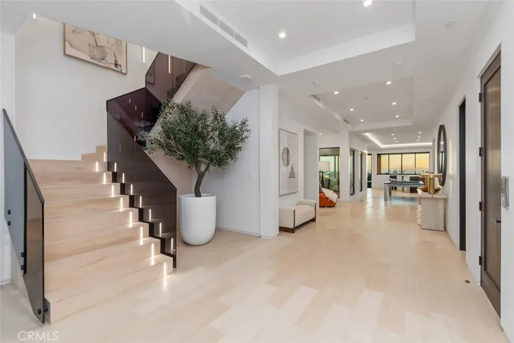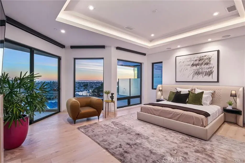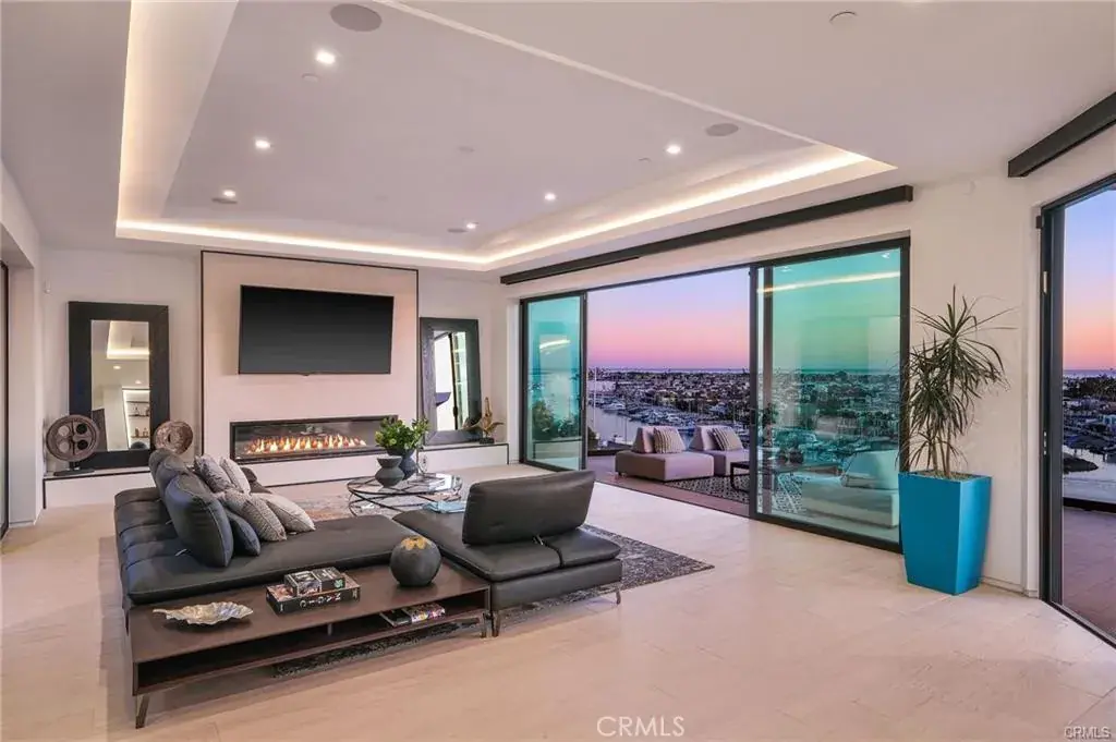 This breathtaking newly-constructed contemporary estate sits in a prime location on the front row of CDM’s Irvine Terrace directly overlooking Balboa Island with panoramic ocean views extending from Dana Point to Catalina, and Palos Verdes. With 6 beds, and 8 baths, the 7,709 sq. ft. two-level property features an open floor plan with a modern and inviting living area adjacent to a custom-built bar. The exquisite kitchen comes replete with Italian marble, custom cabinetry, a hidden butler’s pantry, and a temperature-controlled glass-enclosed wine cellar. Floor-to-ceiling windows allow abundant natural light throughout the house. The luxurious owner’s suite boasts unparalleled views, a fireplace, a spa-like bathroom, and a walk-in closet. Other high-end amenities include a screening room, game room with pool table and bar, spa/gym, Zen atrium, and more. The expansive backyard is perfect for entertaining, with a heated pool and spa, sweeping views of the Marina, outdoor kitchen/BBQ, dining area, and fire pit. Designed by renowned architect Brion Jeannette.