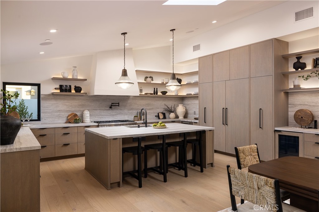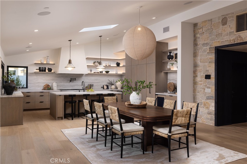Perfectly positioned in Irvine Terrace, one of Corona Del Mar’s most coveted neighborhoods, 1524 Dolphin is a stunning expression of elevated organic coastal living. Reimagined and rebuilt from the studs in 2025, this single-level residence blends organic textures, warm tones, and architectural refinement, creating an atmosphere of effortless California luxury. Designed by Laura Brophy of Brophy Interiors the home spans approximately 2,765 square feet with three bedrooms and three-and-a-half baths, combining natural materials—limestone, oak, and plaster—to achieve a timeless aesthetic. Light filters through sliding glass doors, connecting airy interior spaces with tranquil outdoor living. At the heart of the home, the chef’s kitchen combines artistry and utility with custom oak cabinetry, Dekton countertops by Cosentino, and a full suite of Thermador professional appliances. Adjacent living spaces feature hand-applied plaster detailing, creating a sense of serenity and craftsmanship that carries throughout. The primary suite offers a peaceful retreat with stonewashed linen wall-coverings, honed limestone flooring, and a custom curved Taj Mahal vanity in the spa-inspired bathroom. Two additional bedrooms are thoughtfully designed with layered wall textures and bespoke finishes. Outdoors, lush landscaping and mature olive trees frame a private garden featuring a pool, spa, fire pit, and limestone trough fireplace—a perfect setting for entertaining or unwinding beneath the coastal sky. Reclaimed wood garage doors and gates add character and warmth, while Control4 smart home integration provides modern convenience. Located in the heart of Irvine Terrace, moments from Fashion Island, Balboa Island, and Corona Del Mar Village, this home captures the very best of Newport Beach—sophisticated, sunlit, and endlessly inviting. Shown by appointment only.