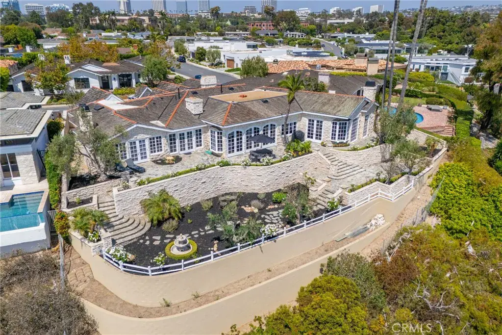 Positioned on a premier bluff-front parcel in Irvine Terrace, this fully furnished residence commands sweeping harbor, ocean, and sunset vistas; an exceptional setting where architectural scale, natural light, and coastal atmosphere converge. Expansive terraced grounds cascade toward the view, creating a series of outdoor environments tailored for refined living and effortless entertaining. A voluminous living room introduces the home with a sophisticated interplay of light and space, highlighted by a fireplace, an intimate ocean-view sitting nook, and sets of French doors that dissolve the boundary between indoors and out. The grand dining room, enhanced by a full serving bar, provides an impressive backdrop for hosting on any scale. The culinary spaces are crafted with remarkable intention: an oversized kitchen appointed with an island, breakfast bar, office nook, extensive counter surfaces, abundant custom cabinetry, premium appliances, dual convection ovens, six-burner cooktop with cast-iron griddle/grill, beamed ceilings, skylight, custom range hood, walk-in pantry, and a dedicated laundry room. The kitchen unfolds into the adjoining family room—an inviting, architecturally rich space with vaulted beamed ceilings, curated built-ins, a fireplace with mantel, and additional French doors capturing the breadth of the coastal panorama. A distinguished office/library creates an ideal retreat for study or creative work, complemented by a fireplace, bespoke built-ins, and soft daylight from a skylight. The primary suite occupies a privileged vantage point, presenting soaring beamed ceilings, a fireplace, a private retreat area, commanding coastal views, and direct outdoor access. The primary bath evokes a spa-like ambiance with a dual-sink vanity, makeup vanity, soaking tub with integrated shelving, walk-in shower, and an expansive walk-in closet fitted with custom organization. A ship-lapped lower level extends the living experience with a flexible lounge ideal for media, gaming, or relaxation. Completing the estate is an oversized three-car garage with generous storage and meticulously arranged grounds that celebrate the beauty of the bluff-top setting. A rare opportunity to experience the revered Irvine Terrace lifestyle; moments from Corona del Mar’s beaches, boutiques, dining, and acclaimed Blue Ribbon schools; framed by some of the region’s most captivating coastal views.