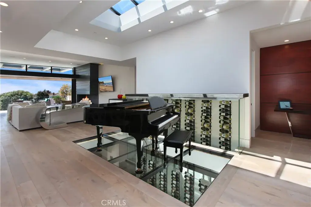 Upon entering the home, you will be greeted by an elegant foyer and a grand floating staircase leading to the upper levels, which are also accessible by elevator. Grand piano is breath-taking on its glass floor, with views to the lower level. Generous Butler’s pantry/back kitchen with dishwasher, sink, etc. – perfect for entertaining and catering staff. Five oversized en-suite bedrooms, including sumptuous Primary Suite with ocean views, luxurious bath with steam shower & soaking tub, and stunning walk-in closet!!! Backyard with oversized waterfall spa, covered and heated patio, fridge, ice maker, even a ping pong table!