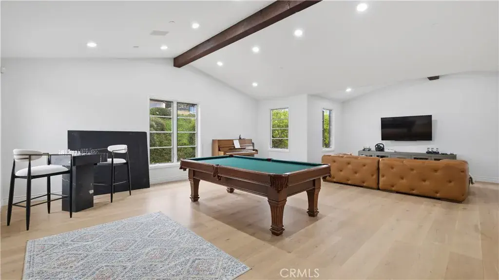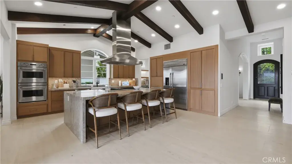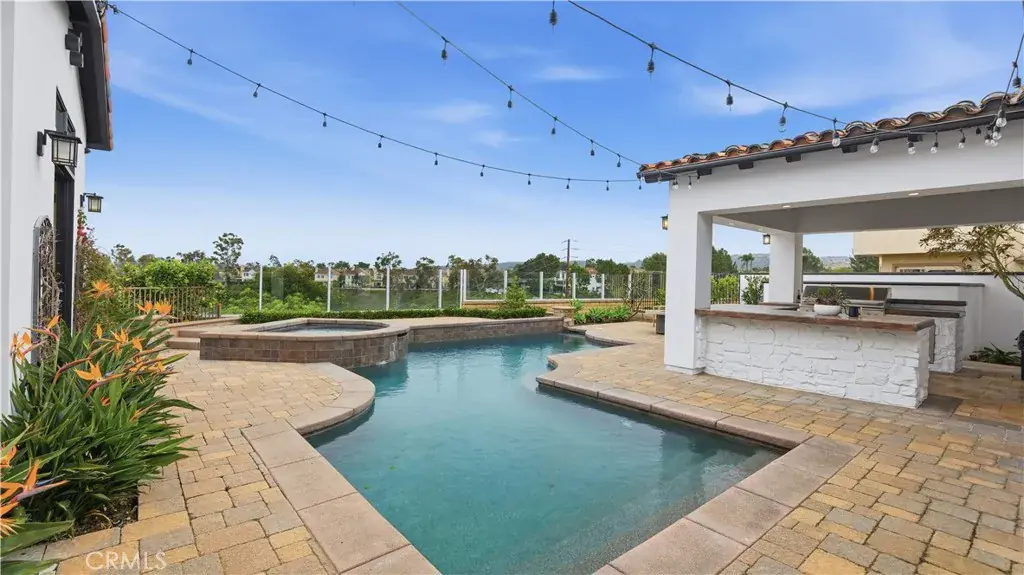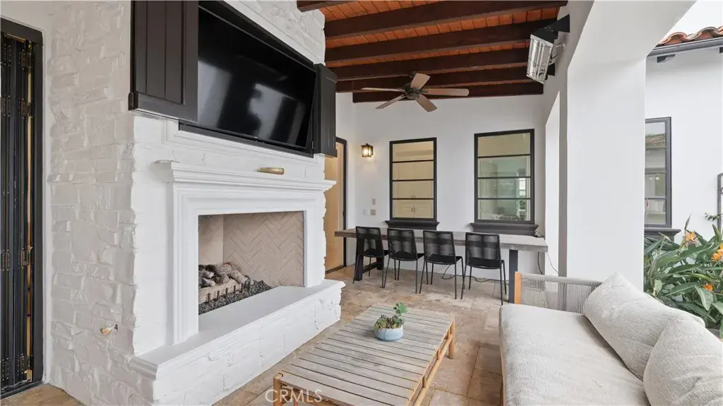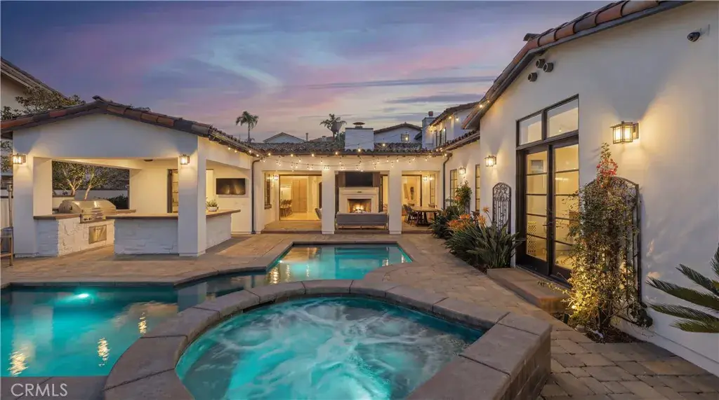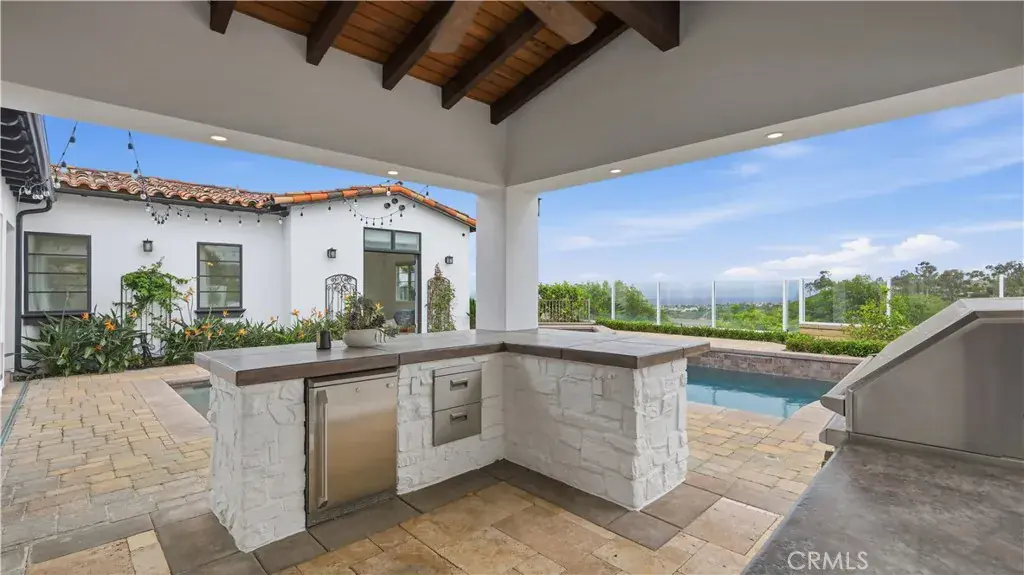 Positioned to capture panoramic mountain and city light views, this fully renovated home offers the convenience of single level living complemented by an additional upstairs bonus room and en suite bedroom and gym. Set on an expansive lot, the property features a gated entry courtyard and a resort style backyard with a pool, spa, and spacious patio, ideal for both everyday living and entertaining. The main level includes four well appointed bedrooms including the primary suite, New limestone and hardwood flooring, fresh paint interior and exterior, plumbing, and new lighting has been added throughout the home, enhancing its fresh, transitional appeal while the vaulted ceilings with exposed beams and hardwood floors adds character and warmth. The gourmet kitchen is equipped with Taj Mahal quartzite countertops, custom cabinetry, and high end stainless steel appliances, including dual ovens and a built-in refrigerator. The open concept layout flows into the family room, where a fireplace and large center island create an inviting gathering space. Designed for seamless indoor outdoor living with two sets of bi folding door systems, multiple rooms open directly to the backyard, where a covered loggia with a full outdoor kitchen extends the living space. Glass railings preserve unobstructed views, while custom lighting enhances the outdoor ambiance. The primary suite features a walk in closet, dual vanities, and a walk in shower. Generously sized secondary bedrooms and recently updated bathrooms. Located on a quiet, single loaded street, this home offers privacy while remaining close to hiking trails, parks, and top coastal destinations, including Fashion Island, Crystal Cove State Park, and Corona del Mar.