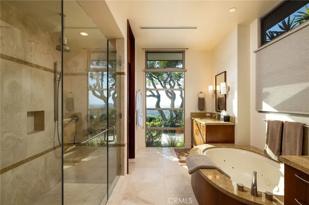Negotiable Short Term Lease. Set behind a private gate on one of the largest parcels within the prestigious Spyglass Hill community, this extraordinary Corona del Mar estate commands a breathtaking vantage point overlooking the Pacific Ocean. Positioned on an expansive 34,000 square foot lot, the property offers exceptional privacy and serenity while capturing sweeping ocean and city views that stretch endlessly toward the horizon. Golden sunsets and cool coastal breezes become part of daily life, all just moments from the beaches, harbor, and charming village atmosphere that define Corona del Mar as one of Southern California’s most coveted coastal enclaves. Spanning over 6,000 square feet, the residence features five bedrooms and five-and-one-half bathrooms, thoughtfully designed to capture the surrounding beauty at every turn. Originally conceived as a custom ground-up residence, the home is a true work of art where expansive Fleetwood windows and doors dissolve the boundary between indoors and out, filling the interiors with natural light, ocean air, and panoramic vistas. Refined architectural details—including Poliform closets and rich mahogany wood trim—reflect an exceptional level of craftsmanship rarely found today. Designed for both grand entertaining and relaxed coastal living, the outdoor spaces are equally impressive. A resort-style pool and spa anchor the private grounds, creating a tranquil retreat surrounded by lush landscaping and dramatic coastal views. Both striking and timeless, 9 Jade Cove stands as a true trophy property where artful design, privacy, and the exceptional coastal living synonymous with Corona del Mar come together in perfect harmony.