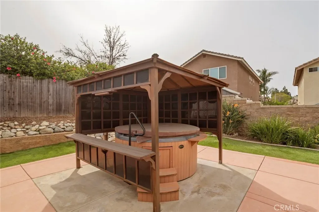 The backyard is designed for both relaxation and entertaining, featuring high quality artificial turf for low maintenance living, a full-length patio cover for shaded outdoor enjoyment, and a gas BBQ hookup. The spa, gazebo, and shed are all included, offering added versatility. Fencing has been updated on both sides, and in the front yard, the property line extends approximately five feet beyond the retaining wall, providing additional usable driveway space.