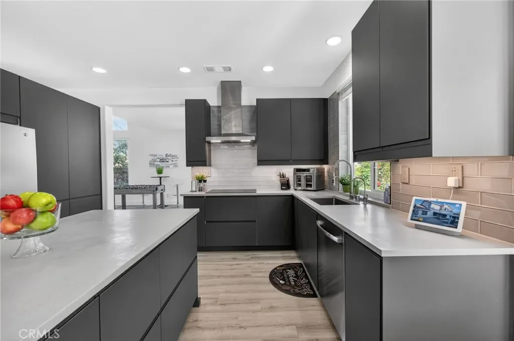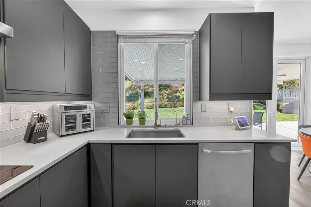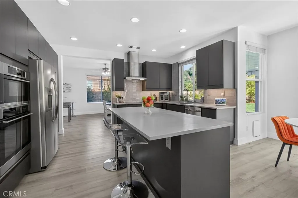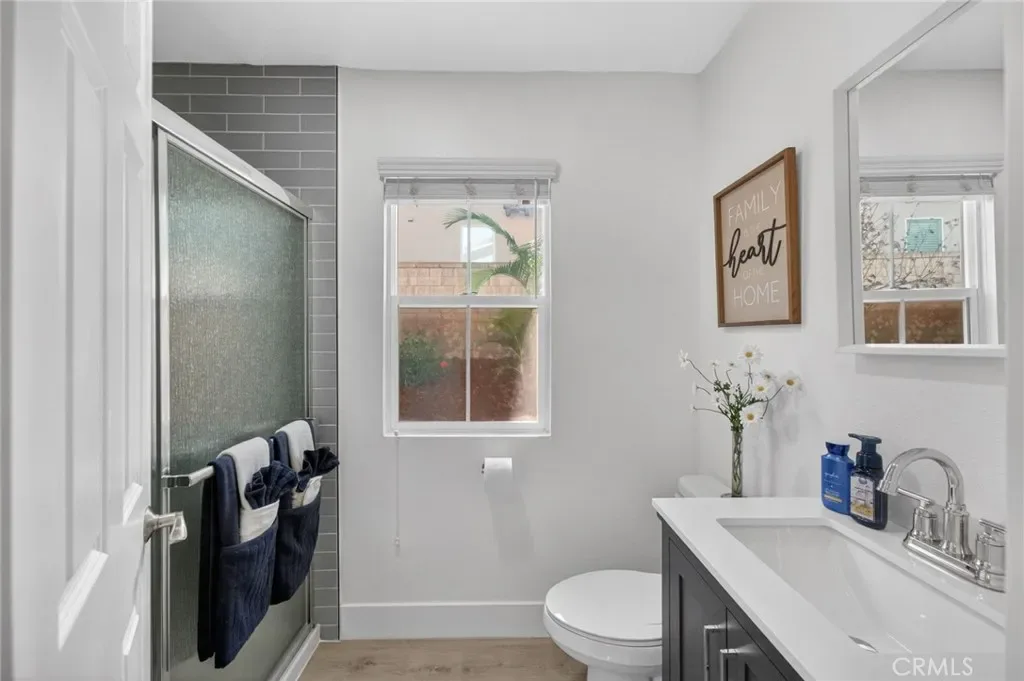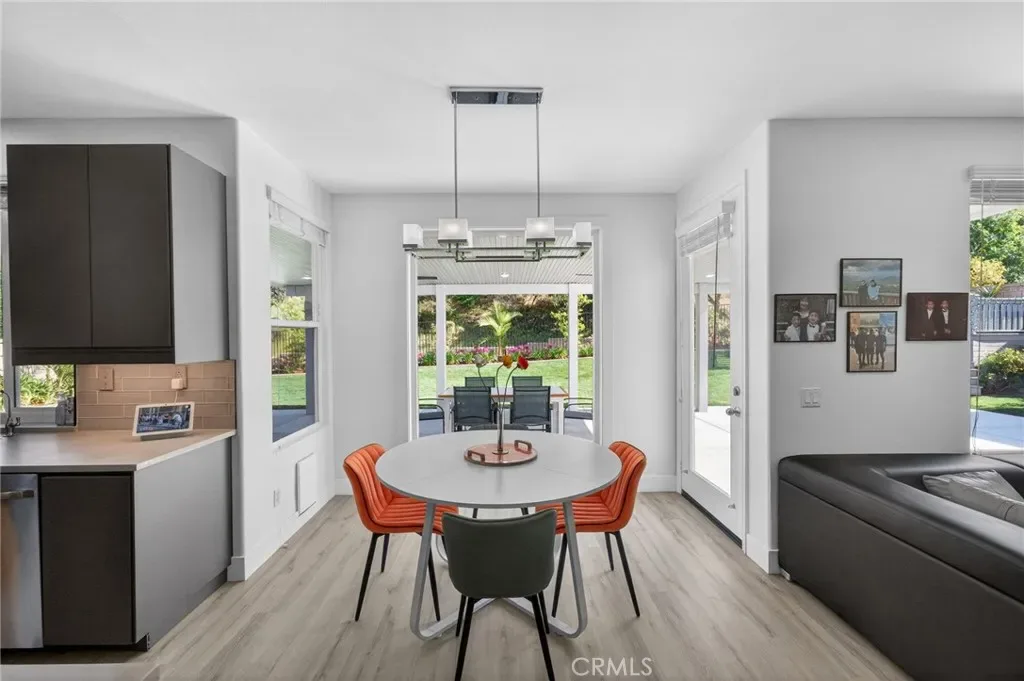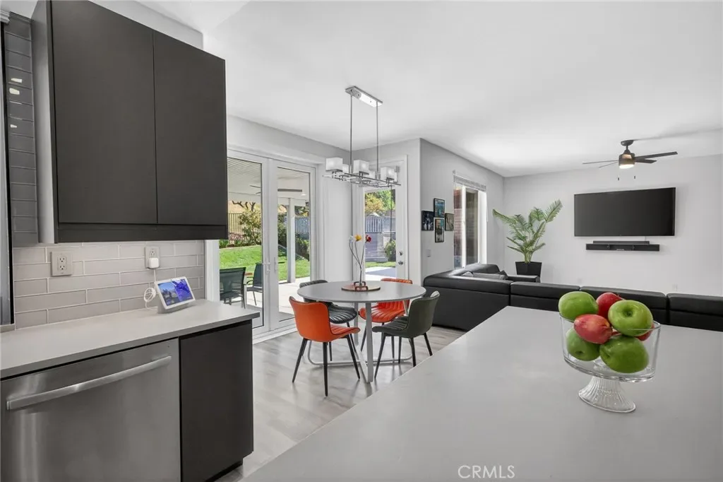 Immaculate EAGLE GLEN 2 story family home, turnkey both inside and out! This beautiful 4 bedroom 3 bathroom STUNNER offers a remodeled and open floor plan complete with newly renovated kitchen, new flooring throughout, fresh paint both inside and out, new downstairs bathroom and shower, and freshly finished landscaping. This home is the definition of move-in ready, complete with all appliances including washer/dryer and refrigerator. Upon entry, you are greeted by soaring ceilings with fresh and vibrant natural light. The kitchen offers modern cabinetry with quartz counters, glass tile backsplash and stainless steel appliances. Downstairs enjoy the mother-in law quarters with larger bedroom, adjacent bathroom with shower, and laundry. Leading up the hard-surface, newly refinished stairs to the oversized primary suite with retreat, spacious bathroom and large walk-in closet. Additionally, upstairs are two spacious guest bedrooms finished in fresh, plush carpet, and a centralized full bathroom. Access to the private rear yard with large covered patio is found through the custom french doors directly off of the kitchen, perfect for entertaining or family time. The rear yard has no rear neighbors, plush lawn and a custom lounging deck for your private morning coffee. Located walking distance to multiple parks, school, golf course, and a few minute drive to new shops, restaurants and the Dos Lagos open air mall. This is the one to see!
