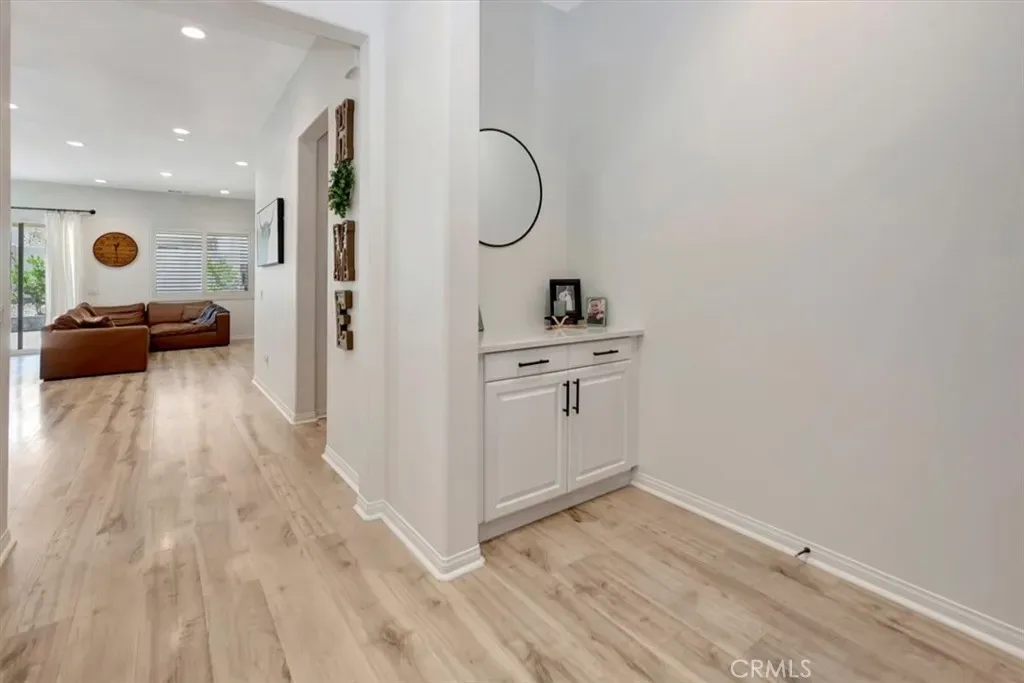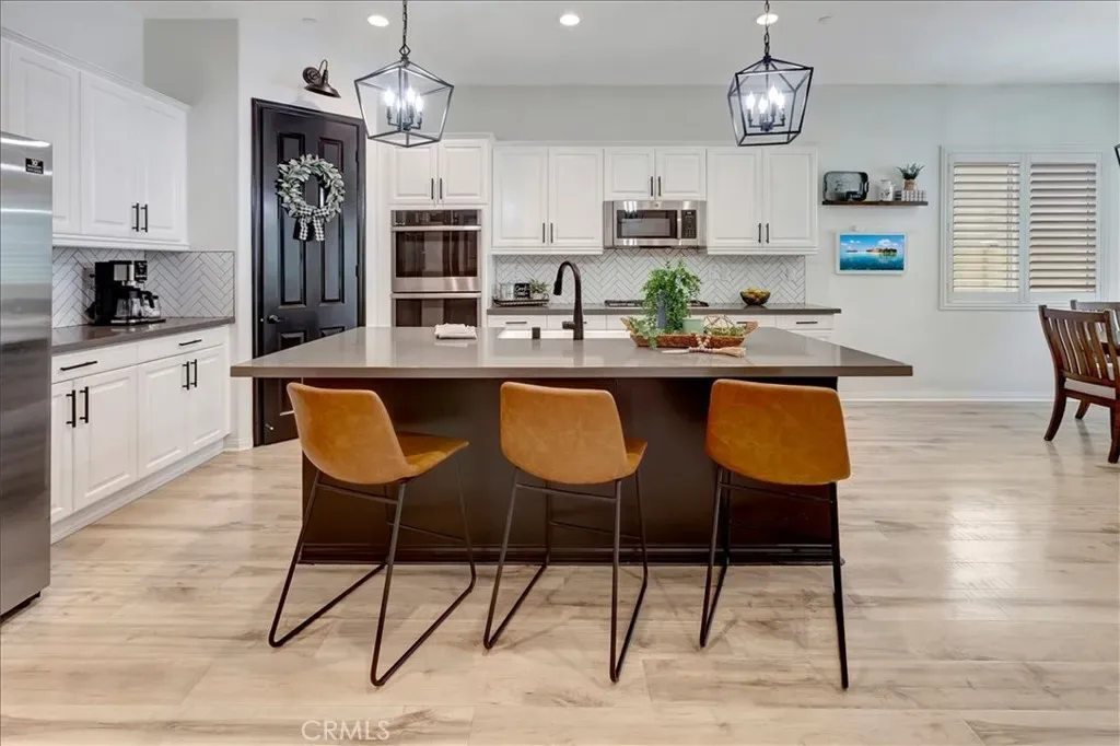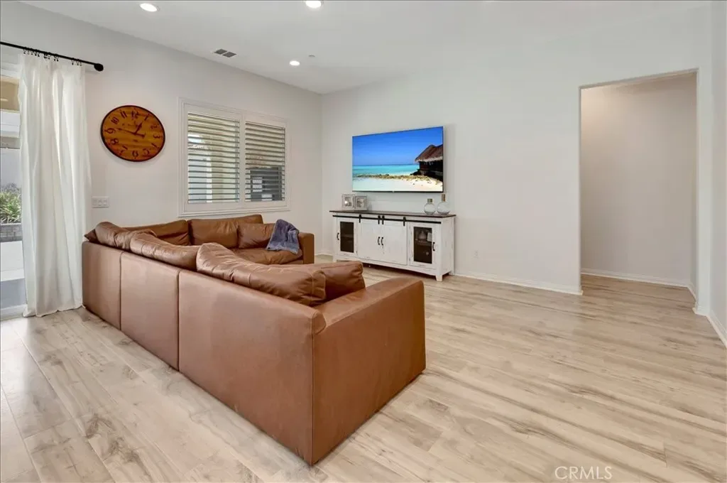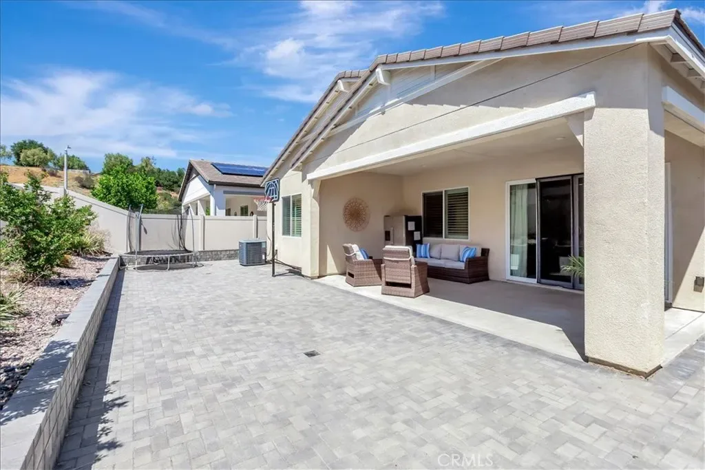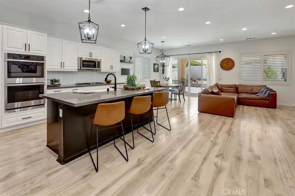 Beautifully appointed single-story home nestled within the gated community of Bedford, offering the perfect blend of comfort, style, and modern living. This beautifully upgraded residence spans approximately 2,210 square feet of thoughtfully designed living space, featuring soaring ceilings and an open and inviting floor plan ideal for both everyday living and effortless entertaining. From the moment you arrive, you are welcomed by a light-filled, airy layout that immediately feels like home. The expansive great room flows seamlessly into a beautifully appointed kitchen, complete with a large center island, double oven, walk-in pantry, and ample space for gathering. A separate dining area provides additional flexibility, creating the perfect balance of casual and refined living spaces. The spacious primary suite offers a private retreat, featuring an oversized walk-in closet and a spa-inspired bathroom with dual vanities, a soaking tub, and a separate shower. Three additional generously sized bedrooms and two well-appointed bathrooms provide comfort and versatility. Additional highlights include an interior laundry room and a two-car attached garage with direct access and abundant custom storage. Step outside to a custom-designed backyard featuring upgraded pavers, creating a sophisticated setting for outdoor entertaining or quiet relaxation. The home also includes solar through SunPower, enhancing energy efficiency and long-term savings. Residents of Bedford enjoy an exceptional lifestyle within a private gated setting with a low HOA. Ideally located for commuters, the community offers convenient access to major routes connecting to Orange County and beyond while helping to avoid heavy traffic along the 15 and 91. Nearby, you will find top-rated schools, scenic hiking trails, shopping, and some of the area’s finest dining. Resort-style amenities include multiple pools and spas, playgrounds, walking trails, a dog wash station, a fully equipped fitness center, and smart home integration with a community app for easy access to amenities. This home truly combines comfort, convenience, and elevated community living, making it the perfect place to call home.