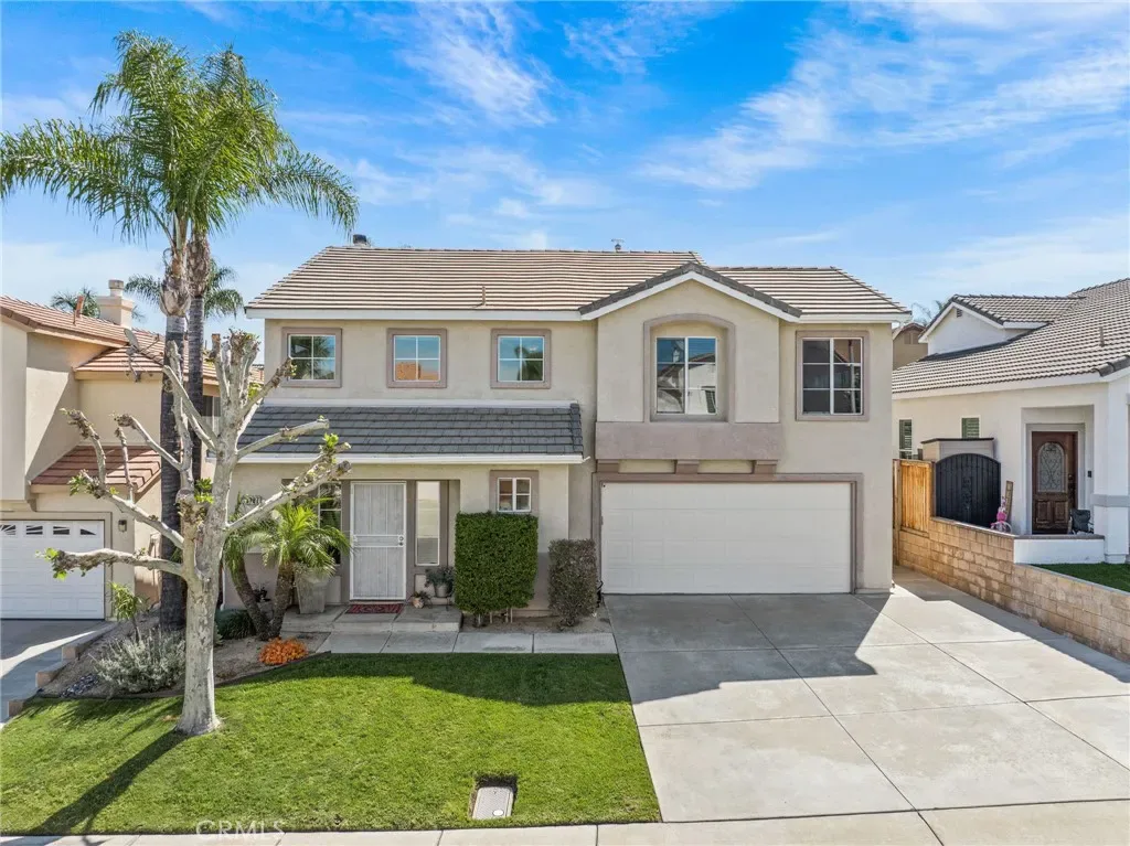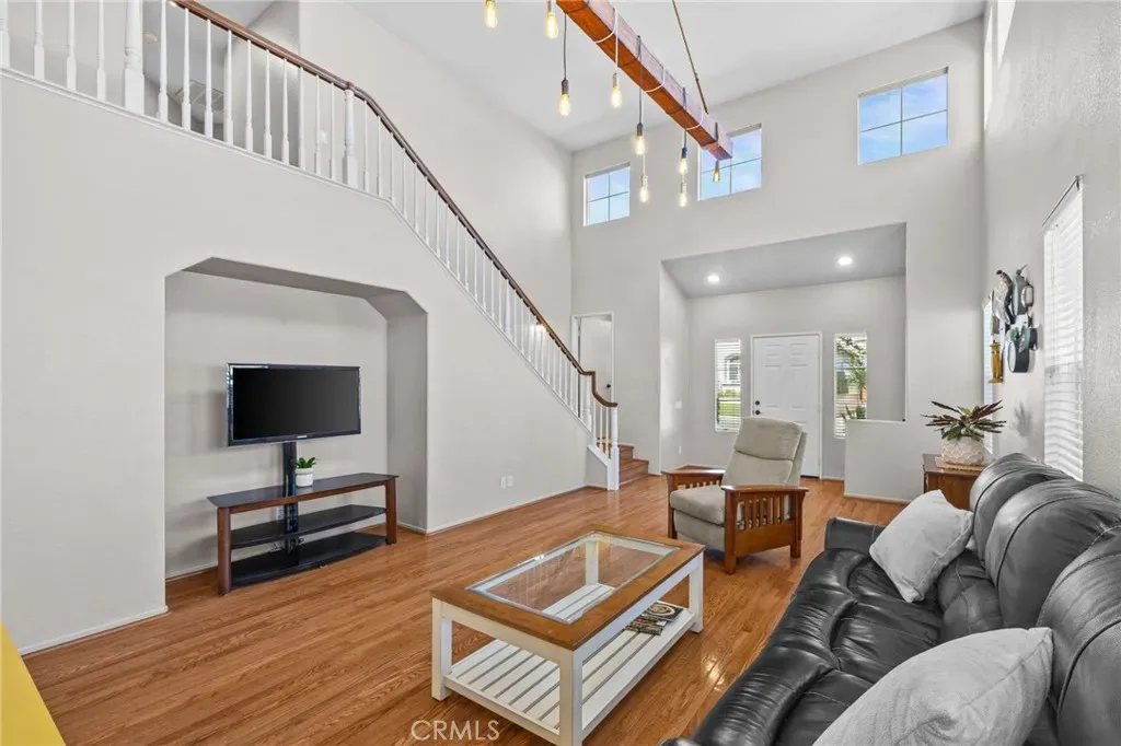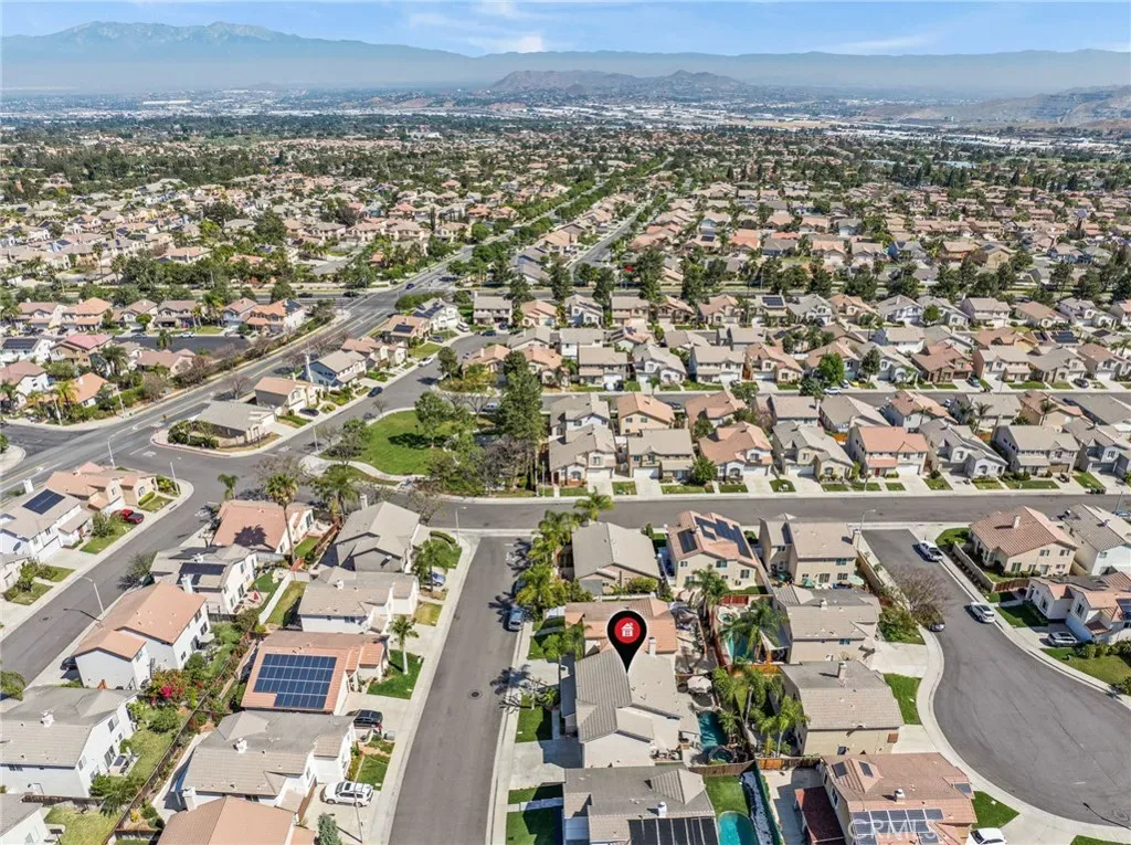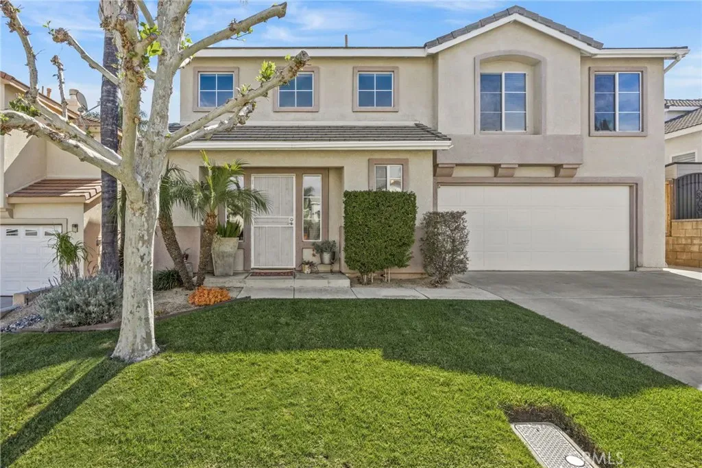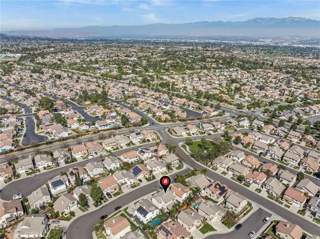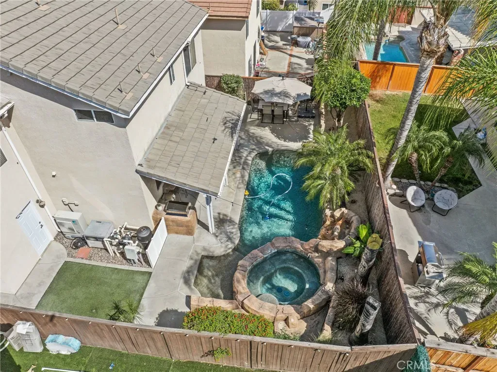 Must see beautiful South Corona pool home! This 4 bedroom, 3 bath home is in the desirable South Corona Sundance community. You can vacation in your own resort like backyard with a refreshing pool and spa, built in BBQ, patio string lights, palm trees, hand carved tiki decorations, and fruit trees. Enjoy the ease of holiday decorating with the Govee programable year-round holiday lights installed in the eaves of this home. Indoors you will find a remodeled kitchen with Quartz counter tops, tile backsplash, stainless steel appliances, soft closing cabinets and drawers, walk in pantry, and a unique decorative ceiling. The living room is impressive with wood flooring, soaring ceilings, and lots of windows that fill the space with natural light. Upstairs there are 4 bedrooms with plenty of room for kids or guests. You will be able to rest in comfort with a newer 18 SEER Daikin VRV Life high-efficiency AC installed in 2022 that features a WIFI Cloud controller for convenience. You will also enjoy the peace of mind the MoenFlo leak detection system will provide you with. This home has so many amazing features and is conveniently close to schools and shopping, you will want to make this your new home!