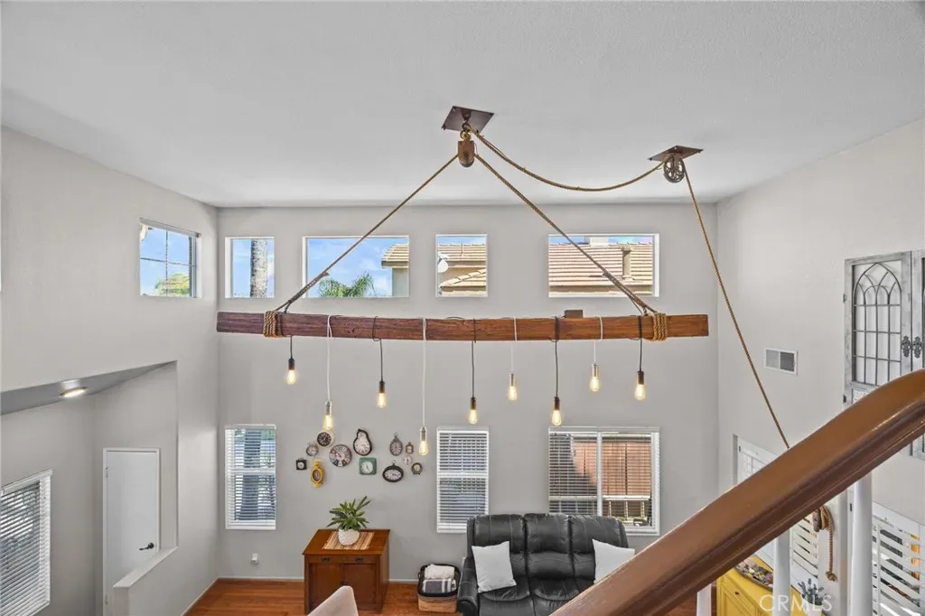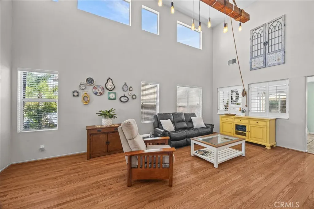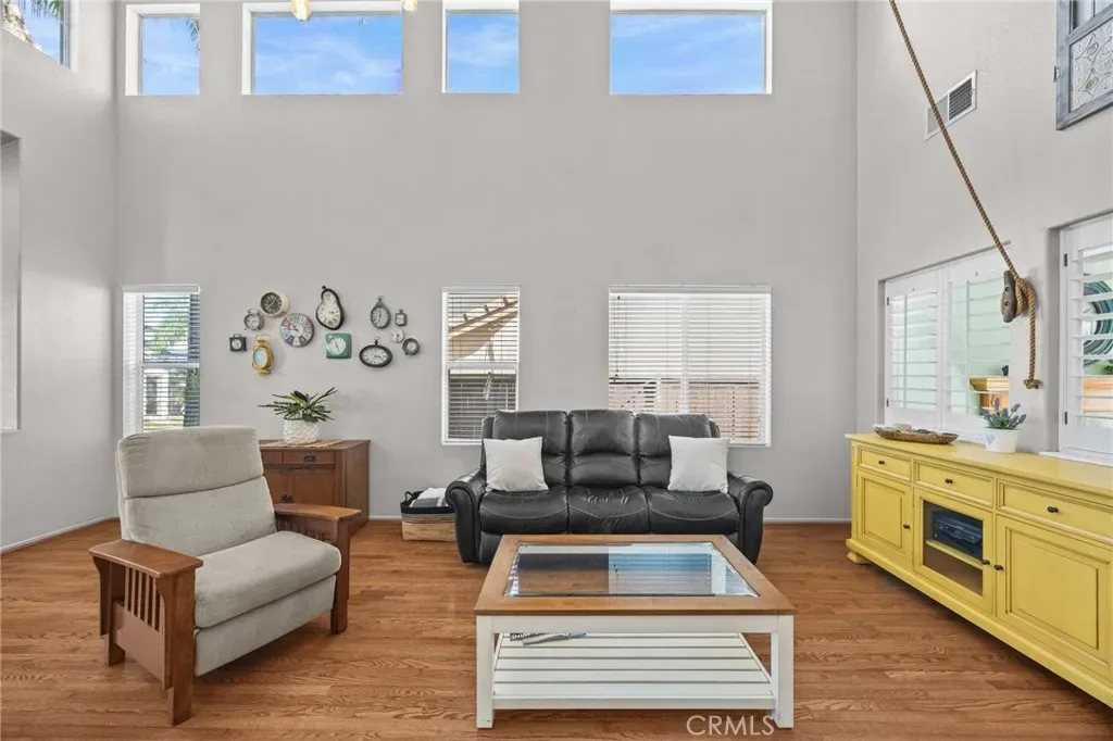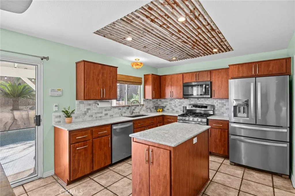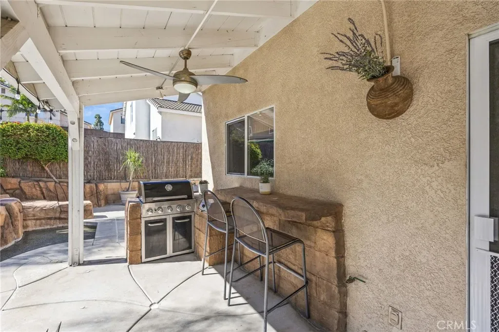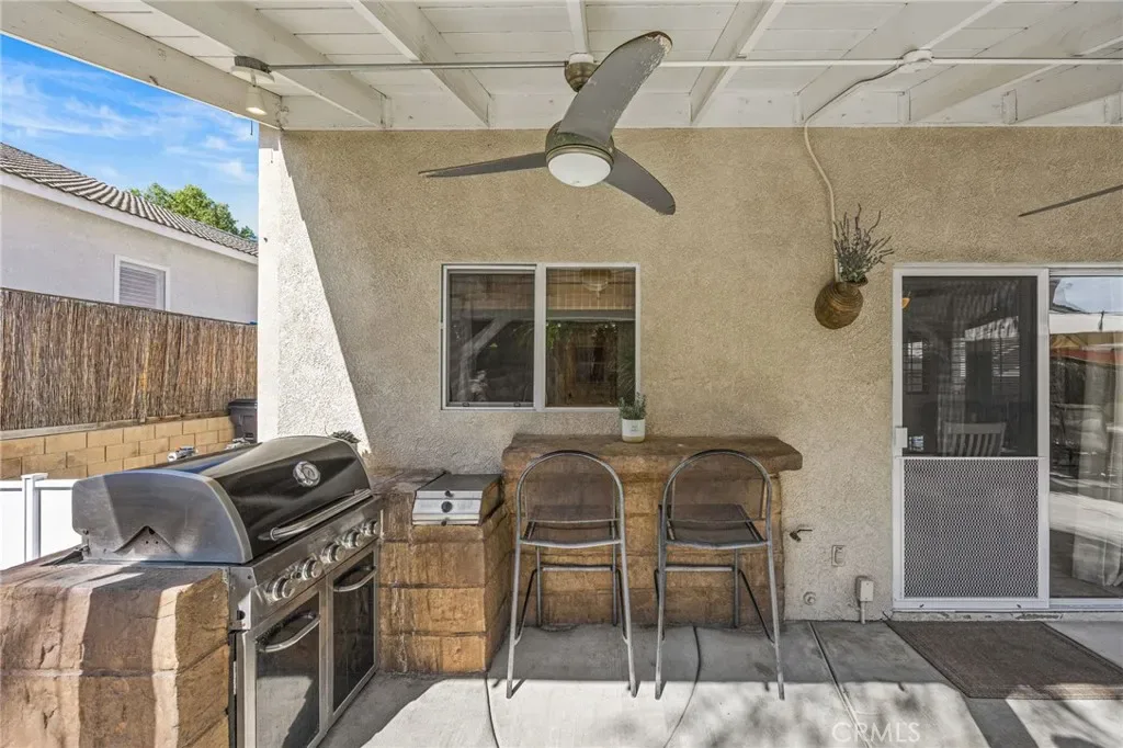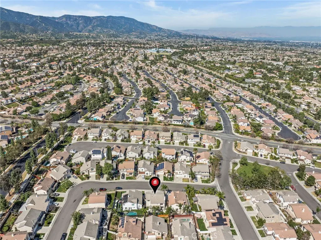 Must see beautiful South Corona pool home! This 4 bedroom, 3 bath home is in the desirable South Corona Sundance community. You can vacation in your own resort like backyard with a refreshing pool and spa, built in BBQ, patio string lights, palm trees, hand carved tiki decorations, and fruit trees. Enjoy the ease of holiday decorating with the Govee programable year-round holiday lights installed in the eaves of this home. Indoors you will find a remodeled kitchen with Quartz counter tops, tile backsplash, stainless steel appliances, soft closing cabinets and drawers, walk in pantry, and a unique decorative ceiling. The living room is impressive with wood flooring, soaring ceilings, and lots of windows that fill the space with natural light. Upstairs there are 4 bedrooms with plenty of room for kids or guests. You will be able to rest in comfort with a newer 18 SEER Daikin VRV Life high-efficiency AC installed in 2022 that features a WIFI Cloud controller for convenience. You will also enjoy the peace of mind the MoenFlo leak detection system will provide you with. This home has so many amazing features and is conveniently close to schools and shopping, you will want to make this your new home!
