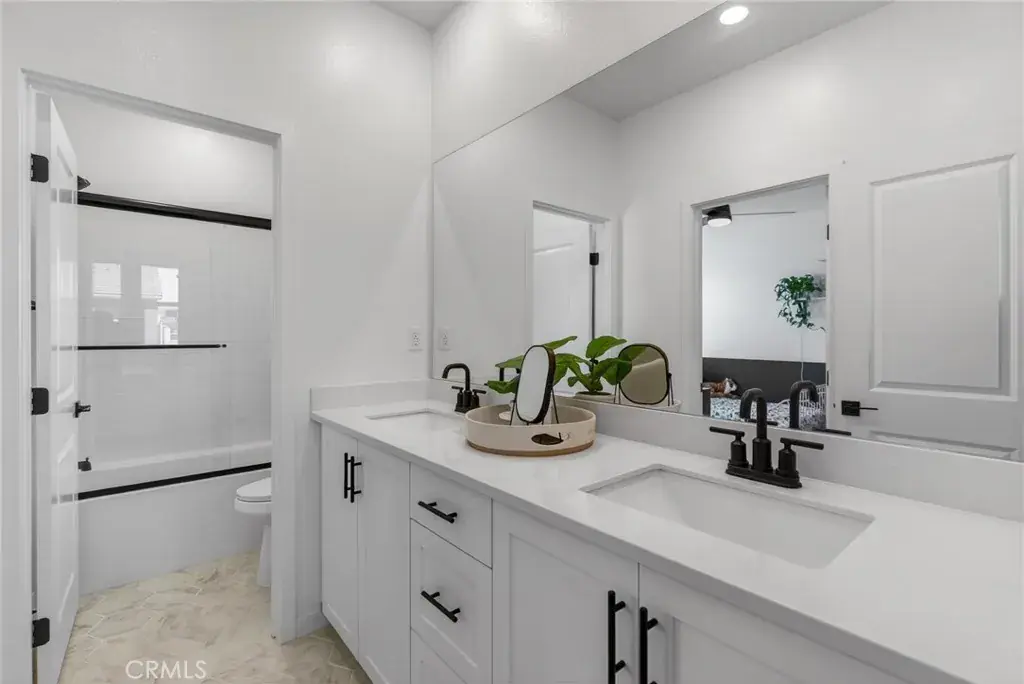 Welcome home to the desirable Bedford Community with a single low HOA. This spacious home is located at the end of a private cul de sac. Upon arrival this better than new home will usher you in and its thoughtfully designed layout will provide the space you have been looking for. The entry has an abundance of natural light that provides a welcoming feeling into this upgraded home featuring beautiful vinyl plank flooring on the first level. The kitchen features white cabinetry accented with black hardware, stainless steel appliances and beautiful quartz counter tops. The large Kitchen island provides additional eating space and centers the open floorplan with the adjoining dining room and living room. The dining room has additional cabinets and looks out to the Rear patio area. The living room is the perfect size and has an abundance of windows that look out to your private rear yard. There is a large bedroom and full bathroom that complete the first level of this home. Upstairs the Large Loft with built in storage provides a second gathering space for large groups or can be that Game room, Theater or Teen space your household has been wanting. The 3rd and 4th bedroom share a full bathroom, and both are larger than average size. The primary suite is the perfect retreat complete with a large walk-in closet and its own private bathroom. There is additional built-in storage along the hallway and the laundry room is conveniently located on the 2nd level as well. The rear yard has a large cement patio area, good sized artificial turf yard space as well as a long side yard with additional artificial turf that leads to another storage area on the adjacent side of the home. No detail has been missed in making this home low maintenance and affordable with low water usage landscaping and the Solar complete with Batteries to keep energy bills low. The Bedford Community is the perfect location for those commuting to the OC and beyond with several options/routes avoiding heavy traffic patterns on the 15/91 connections. Nearby top-rated schools, hiking trails shopping and some of the best local restaurants. This Planned community offers amenities that rival some of the best 5 Star resorts along with being a private Gated neighborhood. This home is located in community of Bedford with a single HOA adding to its affordability.