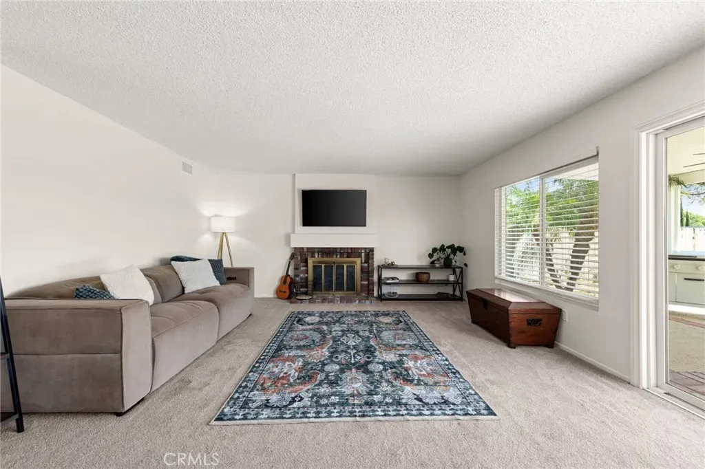 Inside, you’ll find a remodeled kitchen with quartz countertops, tile flooring, and a layout that connects seamlessly to both the living and family rooms, creating multiple spaces to gather, relax, or entertain. Vinyl plank flooring runs through the main walkways, while carpeted living areas keep things comfortable. This home offers a rare touch of character with three fireplaces, one in the living room, one in the family room, and one in the primary bedroom, bringing warmth and versatility throughout the space. Upstairs, the primary suite is generously sized and features a dual sink vanity and plenty of room to unwind. The fourth bedroom offers flexibility for a home office, guest room, or whatever fits your lifestyle. Major systems have already been taken care of, including central heating and air updated within the last year and a half, along with dual pane windows throughout. Step outside to a backyard built for possibility. The newly installed Alumawood patio cover with ceiling fan and electrical creates the perfect foundation for outdoor living, while the expansive yard offers ample room to design your dream setup, whether that’s a pool, entertaining space, or both. With a large front yard, recently painted exterior trim, and a location just minutes from parks, schools, shopping, and easy access to the 91 freeway and 15 toll roads, this home checks all the boxes for space, function, and location.