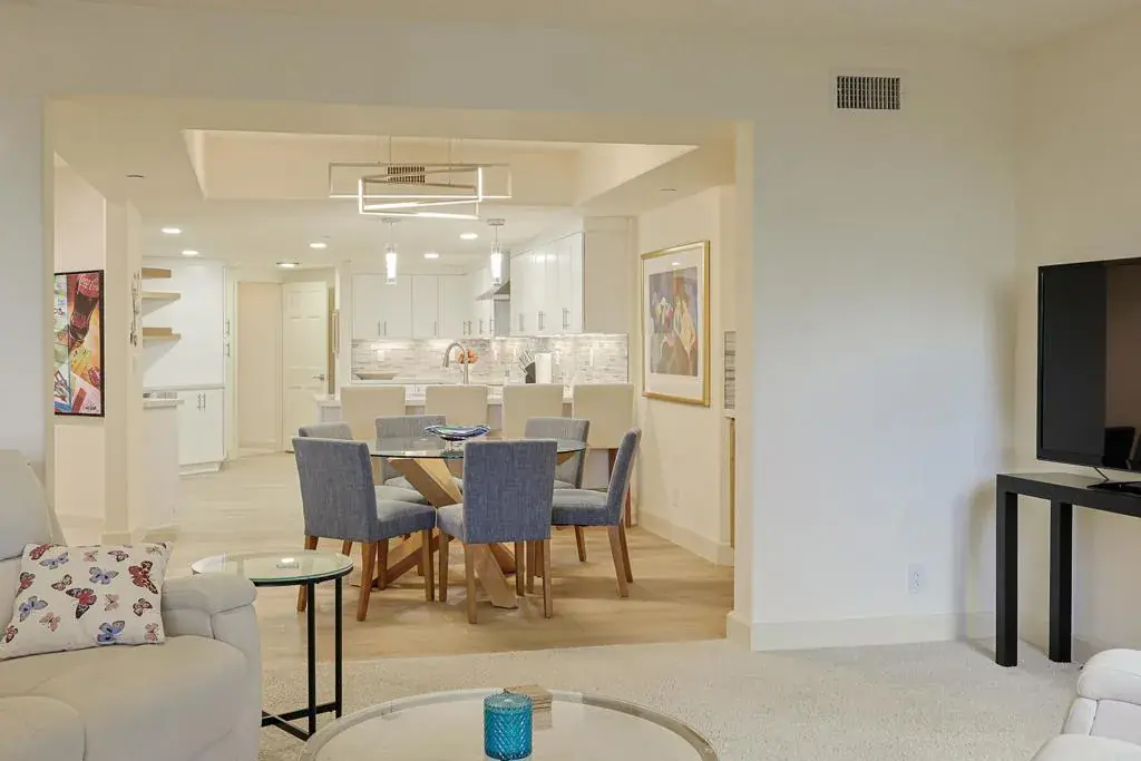 SHORT TERM FURNISHED VACATION RENTAL- NOT AVAILABLE LONG TERM 10K to $20K Welcome to The Landing. An exclusive condo community on Coronado Island that sits right on The San Diego Bay. Community features, pool, spa, and a gym with a sauna. This is a 2-unit condo where the owner made it into one unit. Home features 4 bedrooms, 5 bathrooms, two living room areas, two entrances, one kitchen, two small patios off of the living areas. Condo sits on the bottom floor with views of the bay and pool. Unit is great for two families or large families. No pets.