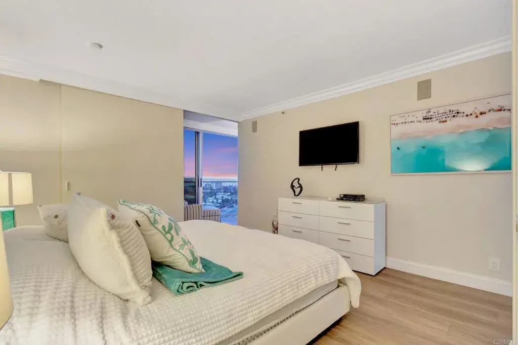 PRICE REDUCTION ! Experience Resort-Style Living at El Mirador Tower Welcome to this beautifull 1 bedroom, plus a versatile bonus room—perfect for a home office, guest space, or playroom. The spacious living area has been extended to the enclosed balcony, offering additional square footage and sweeping bay views. This turnkey home is move-in ready and just a short stroll from the iconic Hotel del Coronado, pristine beaches, and vibrant local dining. Enjoy exclusive access to the unparalleled amenities of The Shores, including tennis courts, multiple pools, a state-of-the-art fitness center, and more. Seller is motivated—don’t miss this exceptional opportunity!