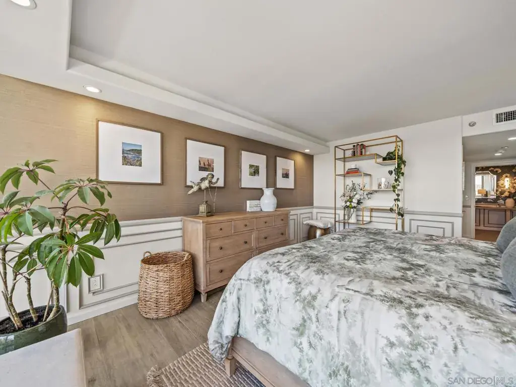 This is the best three-bedroom unit currently on the market based on location, price, inclusions, and tower! If you are a buyer seeking space, light, turnkey living, and panoramic views of the Pacific Ocean, Hotel del Coronado, the San Diego skyline, the bay, the golf course, and stunning sunsets, this home is for you. This corner residence features a thoughtfully designed layout and is offered fully furnished with high-end designer pieces. The interiors have been curated with exquisite craftsmanship and style. Highlights include hand-crafted woodwork in the living room and bar, custom trim in the hallway and primary suite, handmade tile in the kitchen and bathrooms, and designer wallpaper accents. The chef’s kitchen features all-new GE Café Signature Collection appliances. Additional upgrades include new windows, automatic blinds, new interior doors and casings, upgraded lighting and sconces, and a new washer and dryer. Located in La Princesa, the newest and recently remodeled tower at The Shores, this one-of-a-kind home is complemented by beautifully renovated modern lobbies and hallways, offering a refined balance of classic elegance and coastal charm.