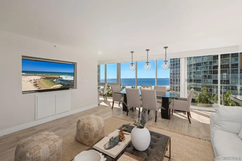 Incredibly opportunity to own a highly desirable corner residence at the Coronado Shores — showcasing captivating views that span the Pacific Ocean, the iconic Hotel del Coronado, San Diego Bay, and the Coronado Bridge. This spacious three-bedroom condominium features new windows throughout, bringing in natural light and framing the remarkable coastal scenery from nearly every angle. The thoughtful floor plan balances privacy and openness, offering seamless resort-style living. Experience the best of Shores living, with access to multiple tennis courts, pickleball courts, private pools, a residents’ clubhouse, fitness center, and more — Whether you call it home year-round or enjoy it as your coastal retreat, this residence offers the feeling of a permanent vacation in the heart of Coronado.