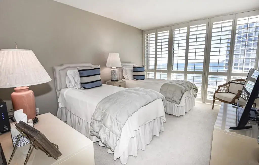 Spacious corner condo in La Princesa tower featuring two bedrooms, three bathrooms plus a den. Expansive views of the ocean, Point Loma and the city. Enjoy resort-style living with access to tennis/pickle ball courts, oceanfront pools, gym, BBQ area, and Beach Club. This condo is conveniently located near the beach, restaurants, and shops, making it easy to enjoy all that Coronado has to offer. Call pricing , rates vary depending on season and length of stay.