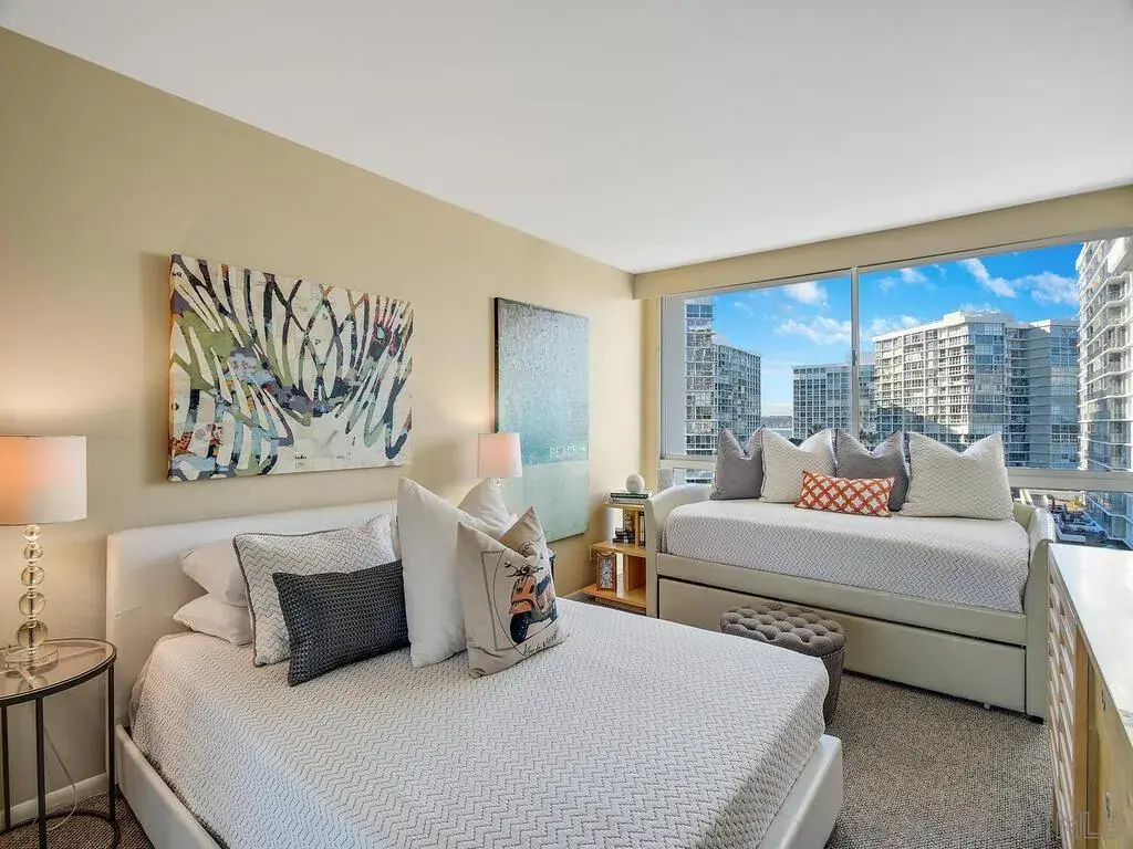 Life Is Better at the Beach – And This One’s Priced to Sell Welcome to 1,710 sq. ft. of light, space, and coastal charm. Set in one of the Shores’ most desirable towers, this 2-bedroom, 2-bath home was originally a 3-bedroom and now features an expansive open-concept layout—perfect for easy living and entertaining. Walls of glass frame panoramic Bay, City, and Ocean views, while a split floor plan offers both flexibility and privacy. The spacious living and dining area creates the feel of a single-family home, and the kitchen with breakfast bar and casual seating provides everyday comfort. Thoughtfully updated over time, this residence includes generous storage, a rare full-sized walk-in laundry room, and spa-style baths. Whether you enjoy it as-is or customize it to your taste, the opportunity is here. At the lowest price per square foot for any 2- or 3-bedroom unit currently on the market, it’s an unmatched value at the Coronado Shores. Tandem parking included. Space, views, and value—your chance to own the Coronado lifestyle.